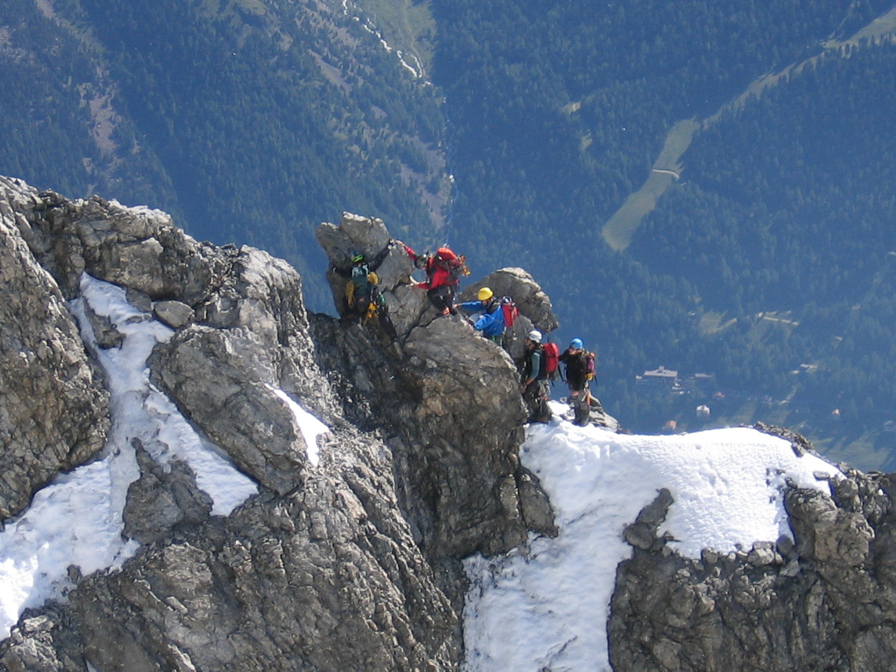 Christian využil „počko“ na druhý deň, keď skoro ráno z Hintergrathutte (2651m.) vystúpil na Ortler cez Hintergrat za 2h 10min: „Boril som sa v snehu – šlo by to aj rýchlejšie!“ hovoril horský vlk zo Suldenu...Spomenul som mu moje problémy na skalnom hrebeni. Len sa usmial. Pred nejakým časom tam bol jeden smrťák, nie je to ťažké, ale človek sa pozerá stále smrti do očí. Dohodli sme sa, že ma zoberie na Hintergrat, teraz už len vyriešiť problém, kedy budem mať čas?
