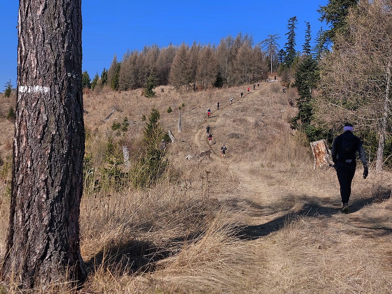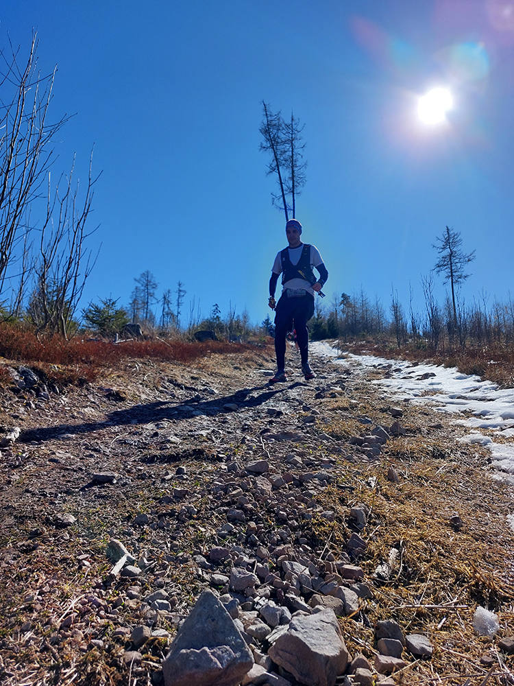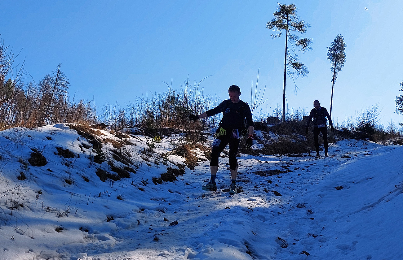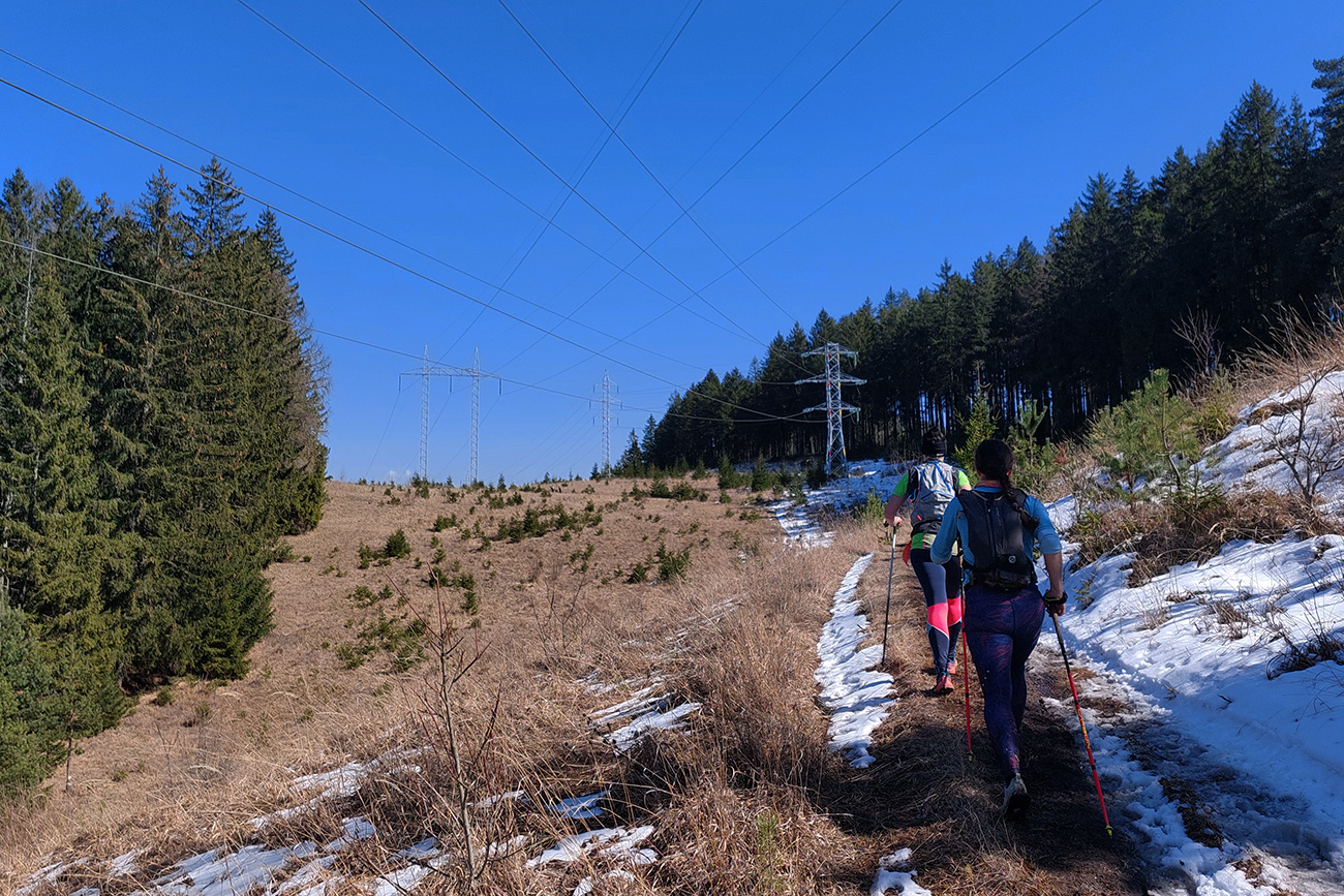 Zima bola zrušená aj tento rok, ale na rozdiel od minulého sa Perinbaba trochu prebrala z letargie začiatkom marca a čosi prisypala, takže na trati to bola miestami aj zábava. Prekvapko hneď na úvod, v tieňoch pod lesom, pár metrov po štarte – čistý ľad. Potom prvý dlhší kopec rýchlo roztriedil bežcov podľa výkonnosti a narobil vláčiky. Až po prvú občerstvovačku krásne, prevažne suché lesné chodníky, mäkko pod nohami a raz hore, raz dolu. Sem – tam výhľad na Tatry. Podklad podľa orientácie svahov, takže všeeeetko – aj zmrznutá hlina, aj blatko, aj sneh, aj ľadíky miestami, ale málo.
