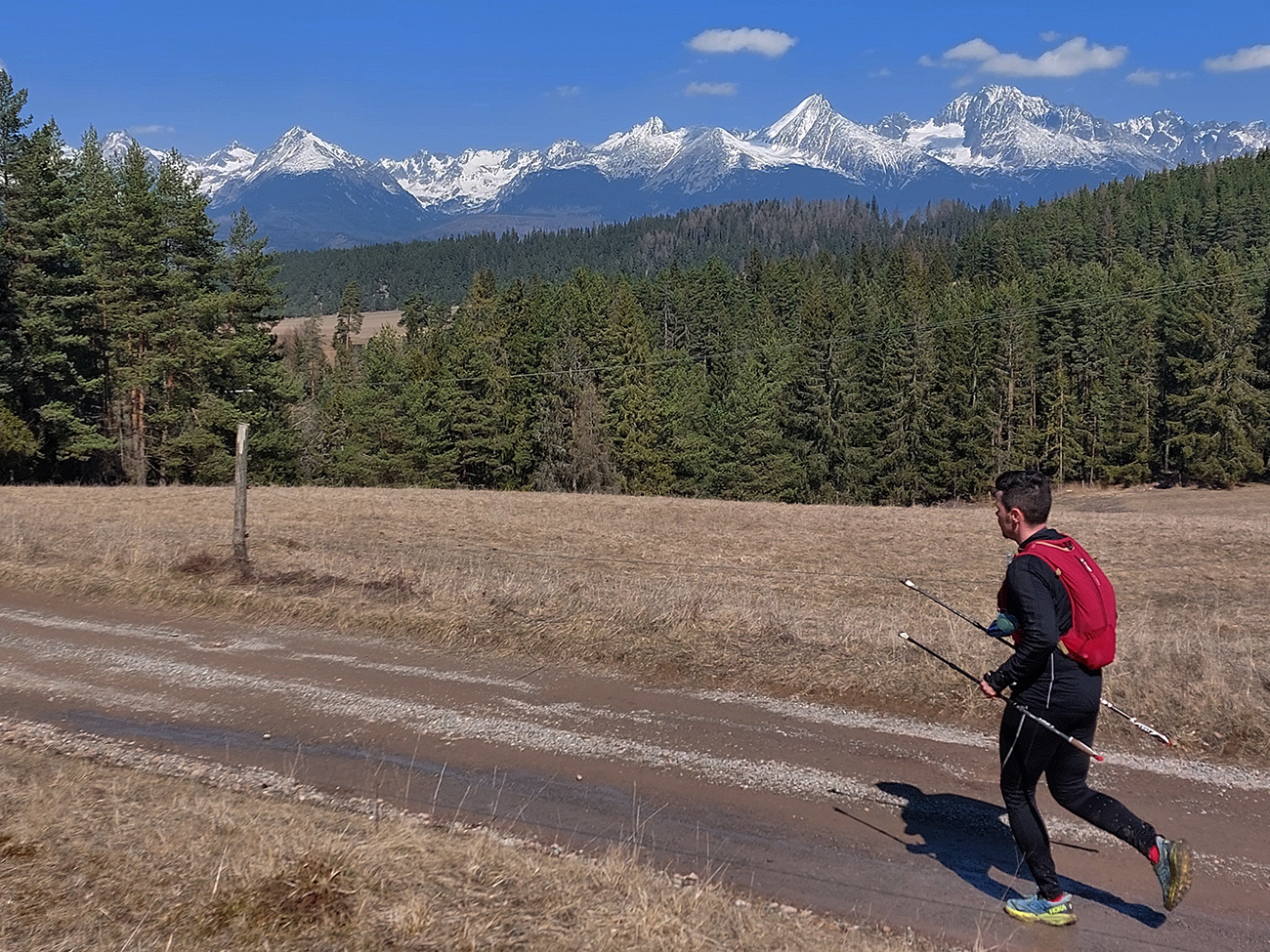 Za tým prvým krmelcom prevažne široké lesné cesty, aj keď lesa naokolo rapídne ubudlo. Pod nohami pribudlo čvachtania, ako sa slnko o zem stále viac opieralo. Ale sklony mierne, dalo sa to „rozbaliť do tempa“ a bonusom boli výhľady na Tatry.