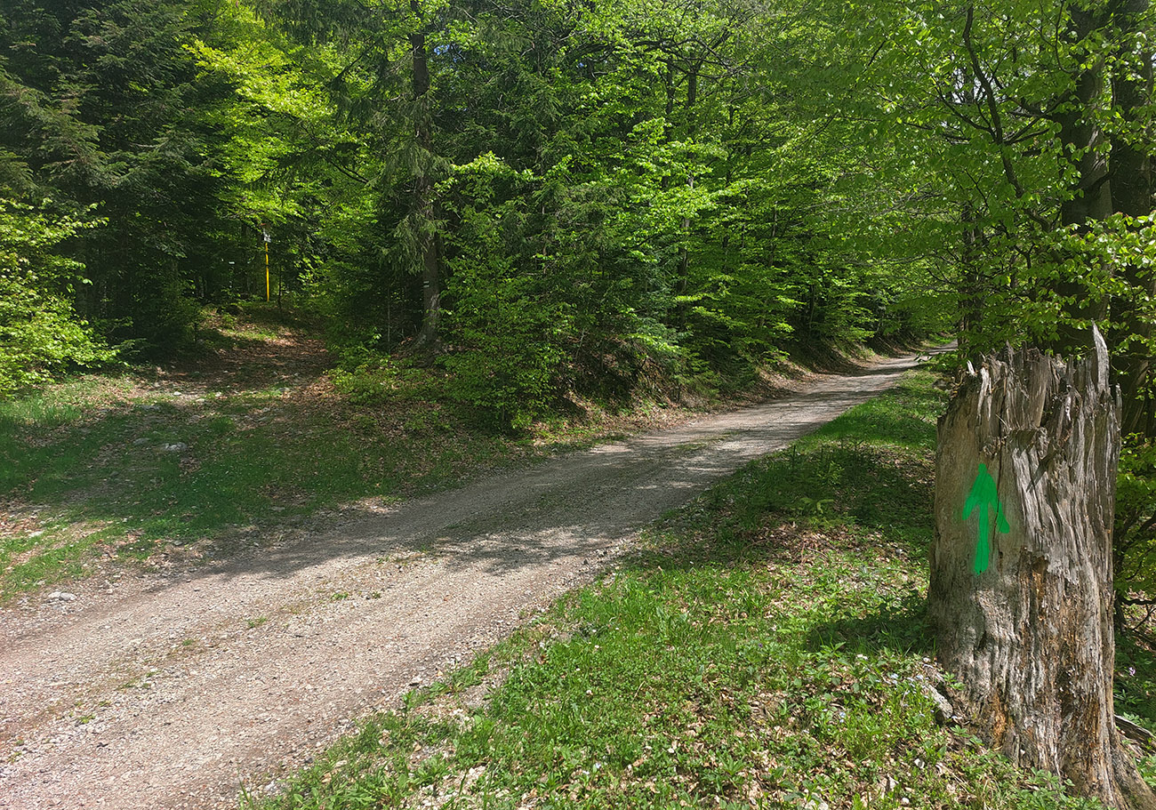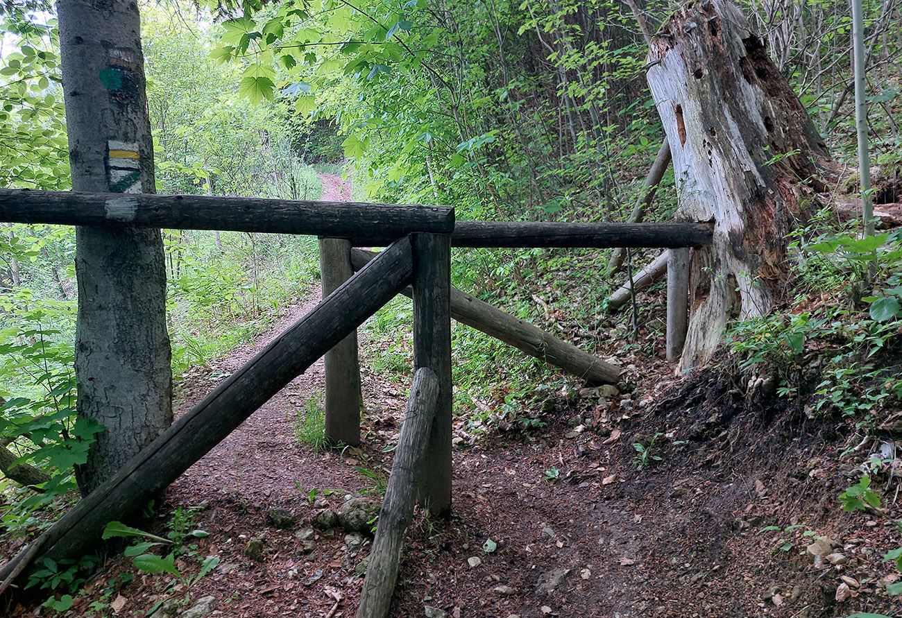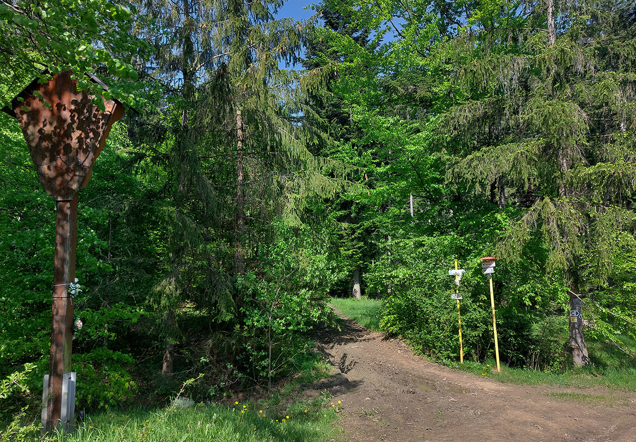 Len „skoro až do Rajca“ preto, lebo aby som si skrátil pobyt na asfalte, po výbehu z lesa som to šmykol pri posede doľava do kopca a do mesta som potom zbehol popri vyhliadkovom kríži, po zeleno-červeno-modrej značke. V Rajci nechápem, prečo všetky značky vedú nelogicky pomimo námestia, popri hlavnej ceste – tak som samozrejme odbočil cez námestie. Potiaľ fajn, aj keď asfalt. Ale potom to začalo...