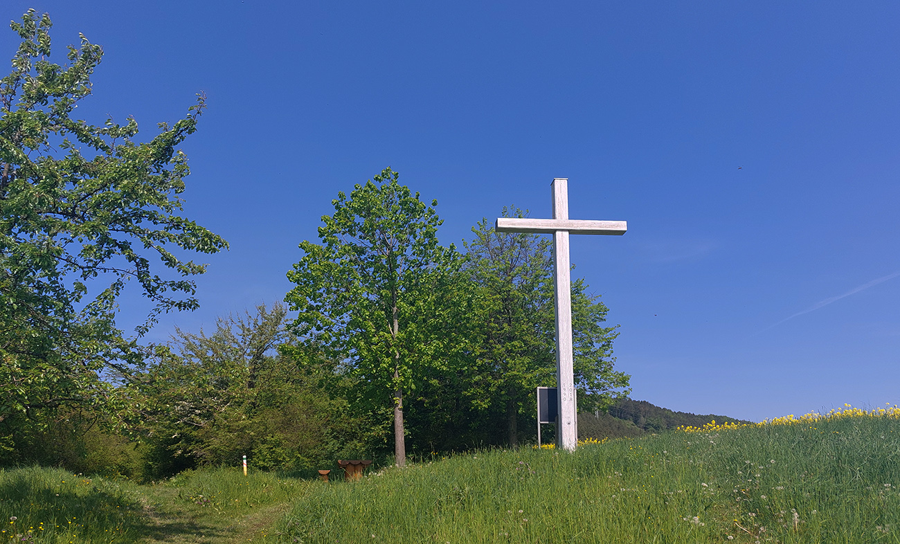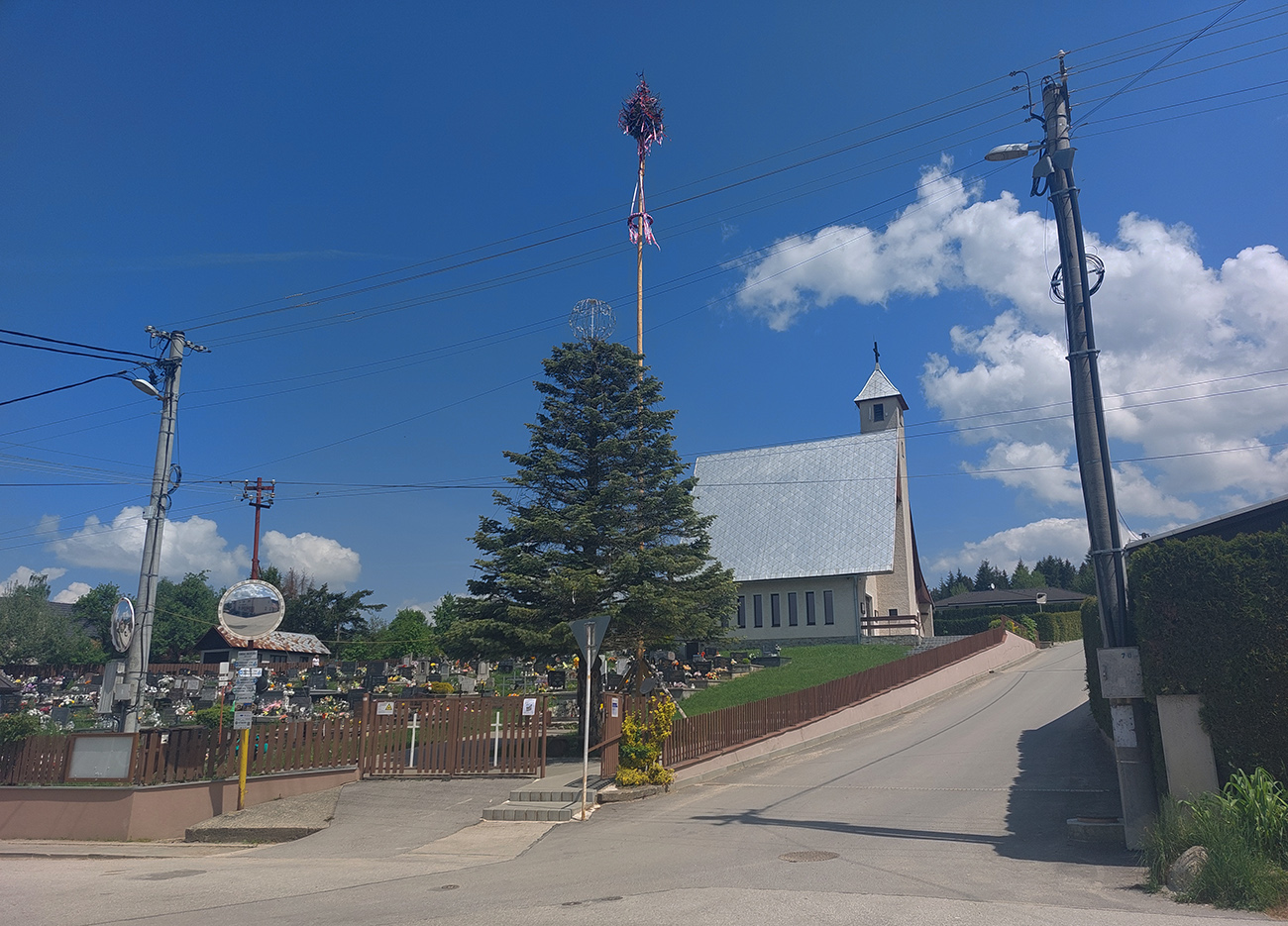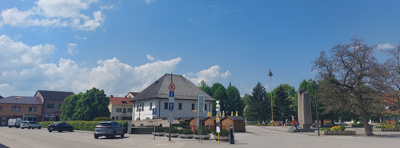 Len „skoro až do Rajca“ preto, lebo aby som si skrátil pobyt na asfalte, po výbehu z lesa som to šmykol pri posede doľava do kopca a do mesta som potom zbehol popri vyhliadkovom kríži, po zeleno-červeno-modrej značke. V Rajci nechápem, prečo všetky značky vedú nelogicky pomimo námestia, popri hlavnej ceste – tak som samozrejme odbočil cez námestie. Potiaľ fajn, aj keď asfalt. Ale potom to začalo...