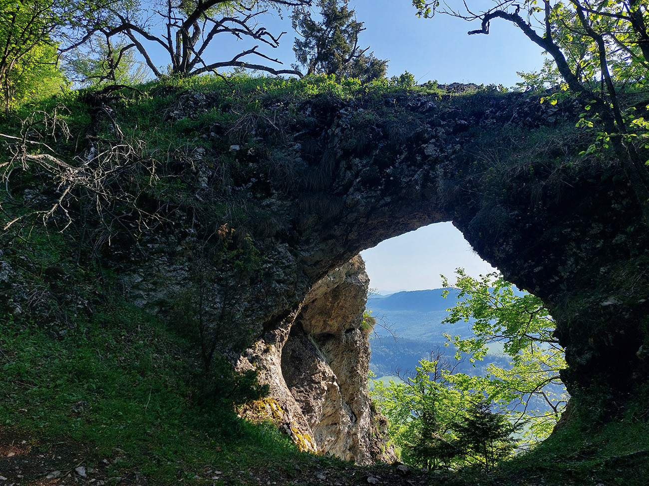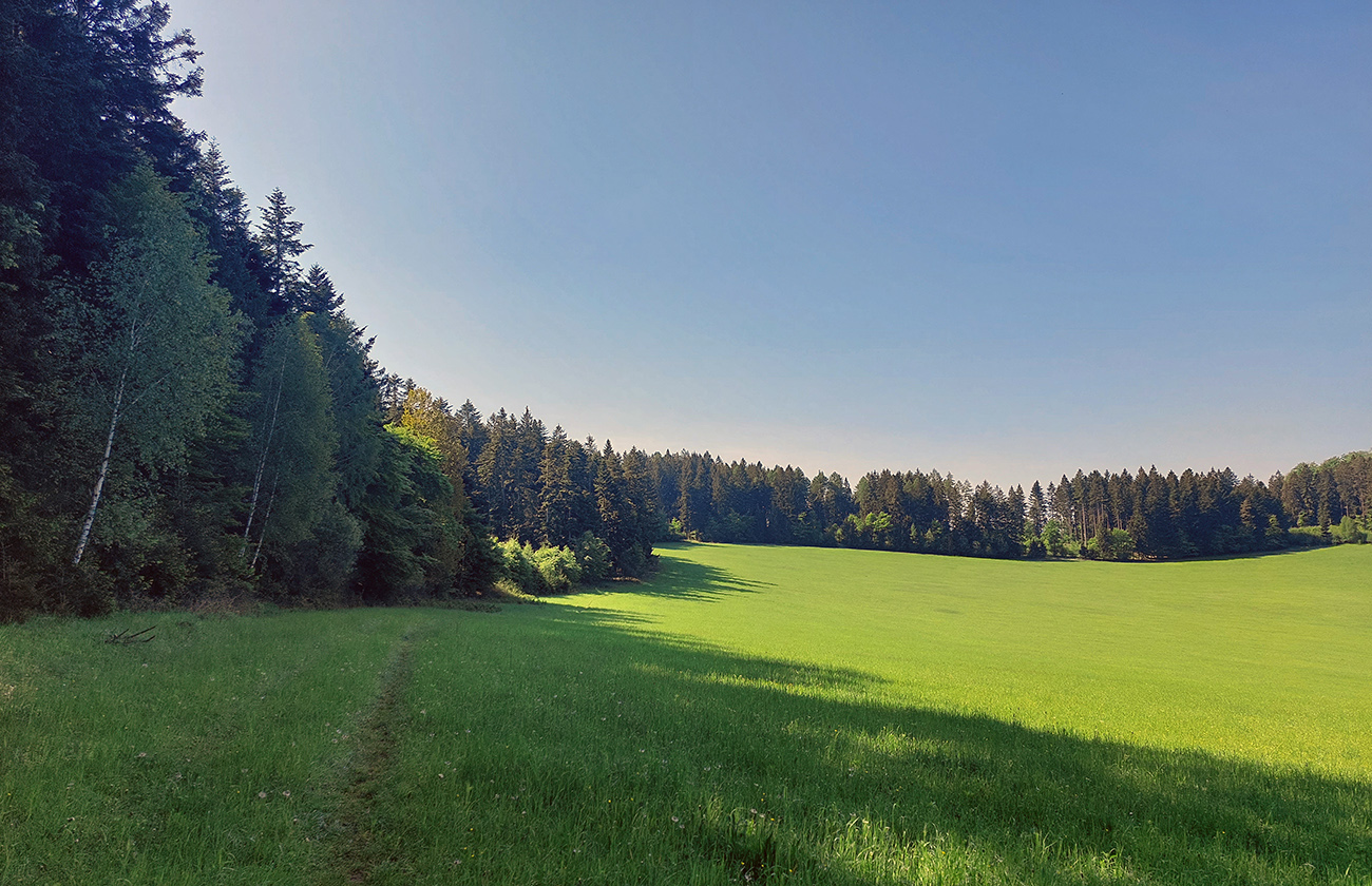 Po prudkom zbehu lesom nastalo trochu improvizačné hľadanie obchvatu Drieňovky po lúkach a krížom cez krovinaté remízky, ale ciest je tam dosť, tak som sa k jednej pridal (telefón pomohol), a už som sa štveral cez Kostolec na Bosmany. Tie som si konečne raz vychutnal v peknom počasí, bez hmly. Rovnako výhľady z nich nazad k Manínom.