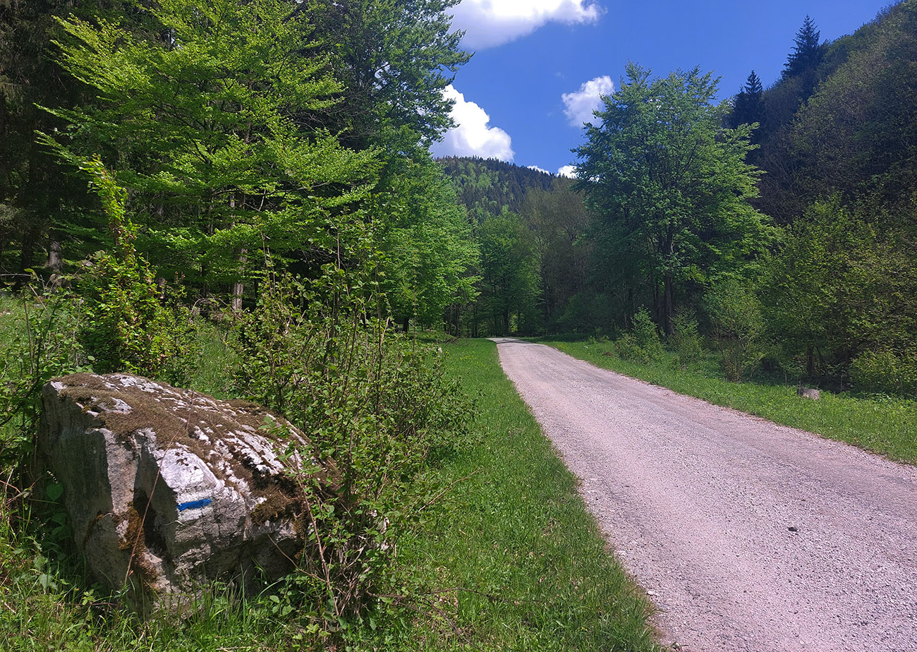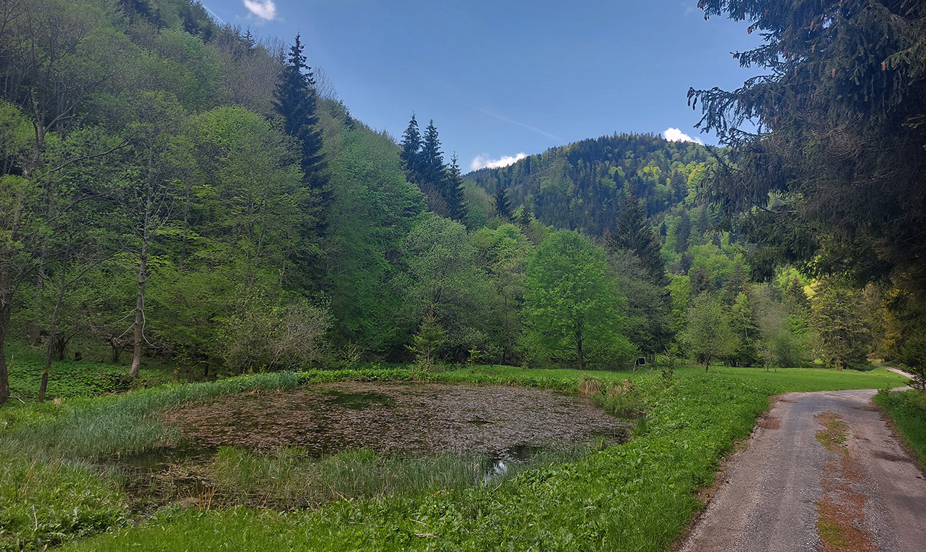 V Kunerade ďalšia, tentokrát plánovaná zachádzka, lebo som hľadal krčmu - nejako to telu celé prestávalo chutiť. Tak že pred najdlhším kopcom drgnem jednu čapovanú. Ale krčma nikde, tak som sa musel hore dolinou uspokojiť s vlastnými zásobami a studničkami pri ceste. Inak pekná dolinka je tá Stránska - čím vyššie, tým krajšia. Nie moc „lesohospodárska“, čo je v týchto končinách skôr výnimka.