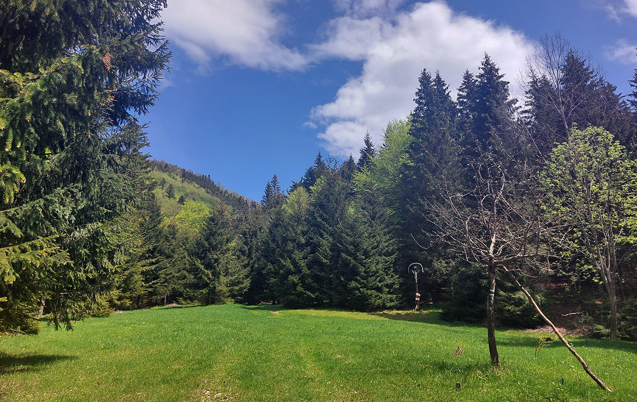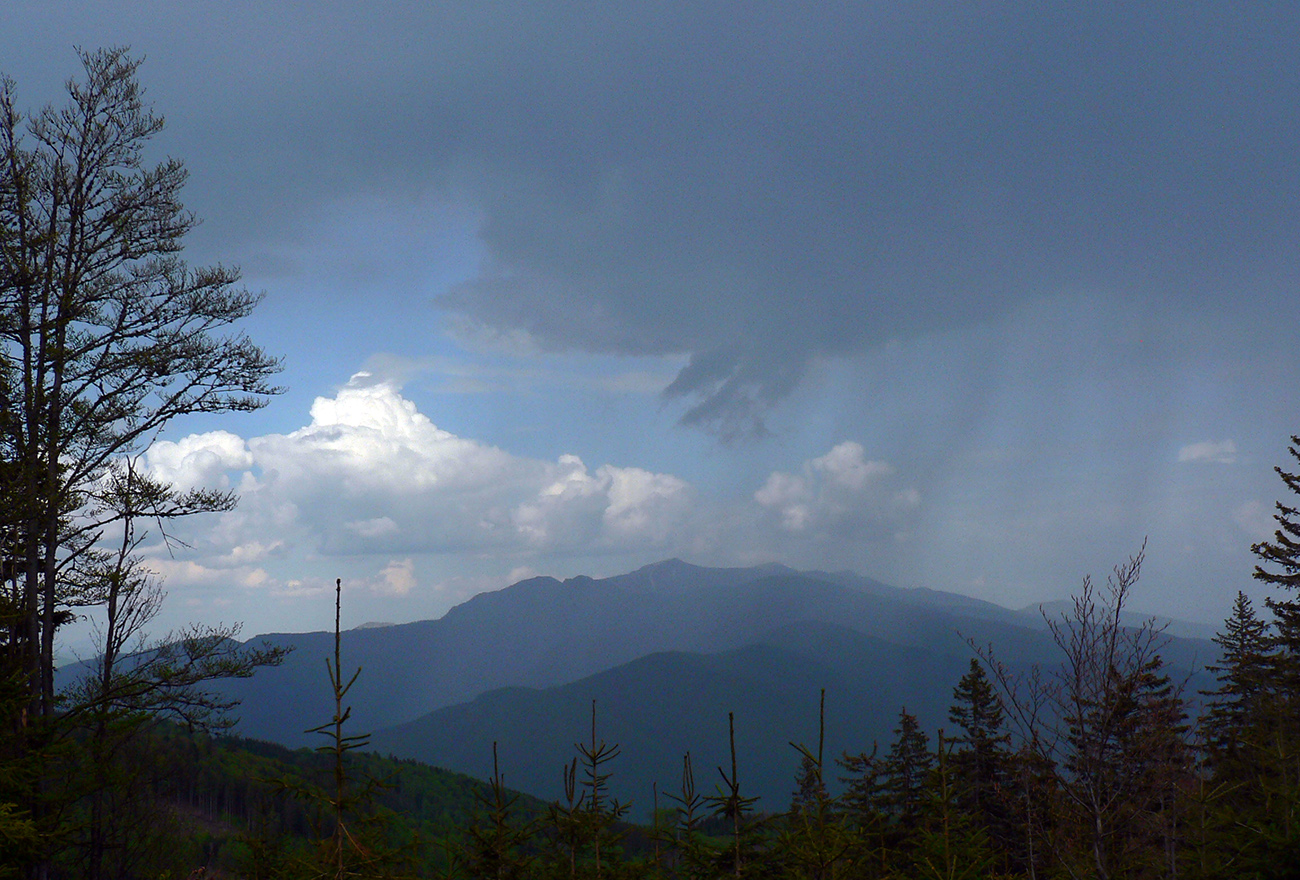 Lebo smerom na severovýchod, smerom k Minčolu, to nevyzeralo nejako zle. Ale keď na lúkach za vysielačom, pred vstupom do lesa, predo mnou prvý raz zahrmelo, radšej som sa pratal z hrebeňa dole, „tajnými“ chodníčkami na Priekopské hole a odtiaľ cez napájadlá traverzom na Dlhú lúku, napojiť sa na zostupovú žltú značku.