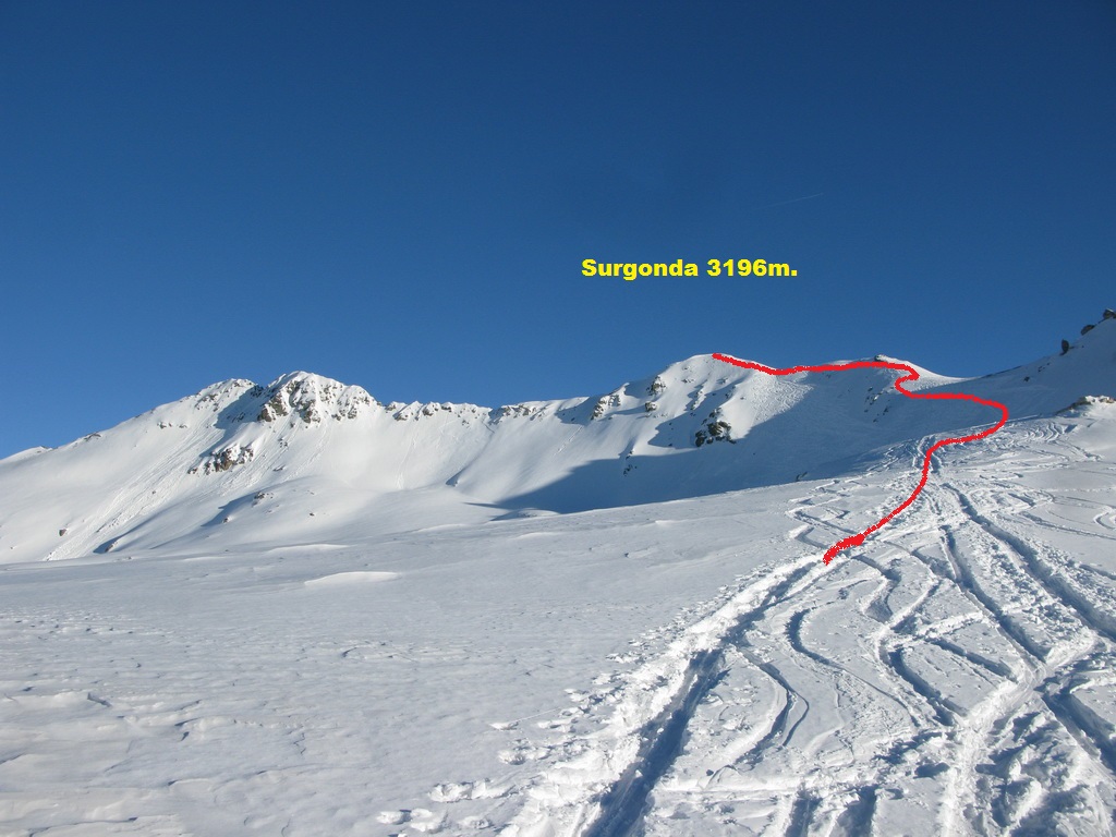 Piz Surgonda 3196m, 8:45 (980v.m. 3,5hod podľa skialp sprievodcu)
