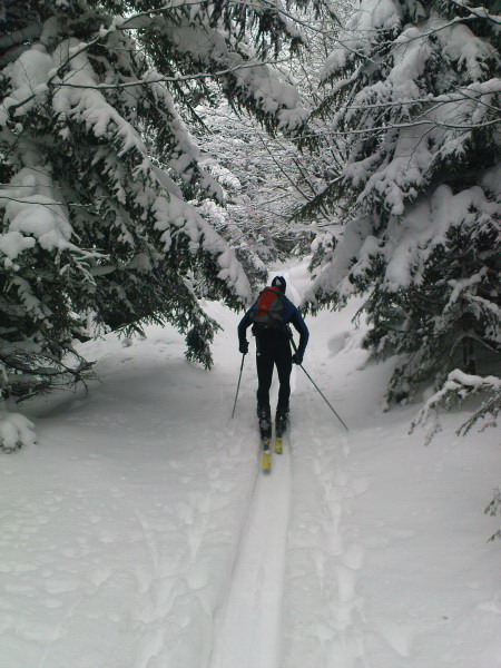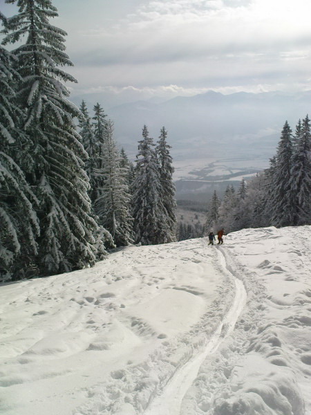 Smerom dole sme to zvrtli na Trusalovú stopa tam bola prešľapaná už od rekreačného objektu nad motorestom. Na lyžiach sme zišli až na parkovisko, stopa bola prešľapaná aj z tejto časti smerom na Chleb. Dá sa ísť dole od Zajacovej aj po ceste, je odhrnutá.