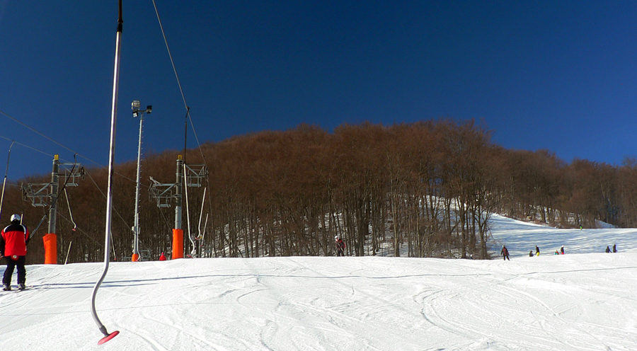 Krátke zjazdy na pásoch striedajú krátke výšľapy. V lese je snehu tak akurát, prikrýva napadané konáre. Je rovný, zmrznutý, neborí sa, stopu si položíte kam chcete.