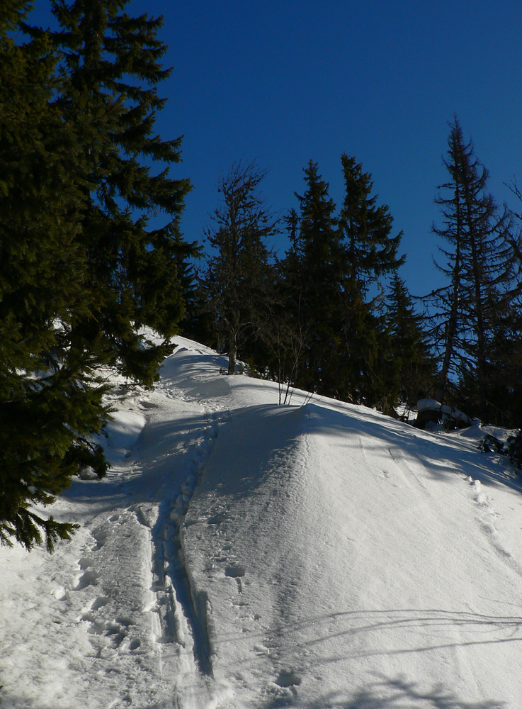 V polovici februára keď príde jar, to dúfam že nie je ešte posledné slovo, čo zima povedala. Ale dole sa teploty šplhajú nad desinu, tak treba vyššie vyliezť, som si povedal. Ale zas nie príliš, aby ten betón na slnku cez deň trochu povolil. Na to je tento kus hrebeňa priam ideálny, lebo chodník je otočený čiastočne na juh. A na Chopku hlásili cez deň +2 a takmer bezvetrie.
