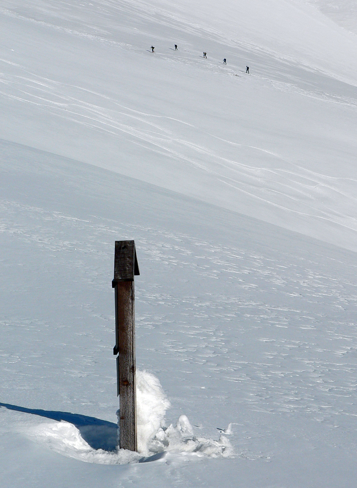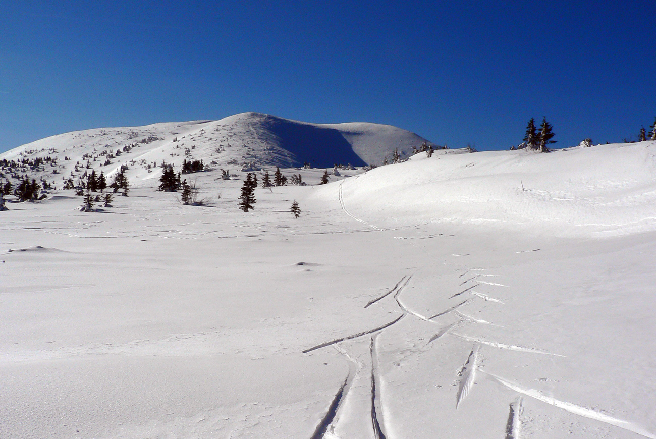 Celý masív až pod Košarisko bol síce ešte ľadový a poriadne hrkotavý, ale od Sedla pod Skalkou až na Chopok už také jarné optimum – niečo málo čerstvého, vlhkého snehu na starom, ľadovom základe. Rýchla stopa, len v prudších traverzoch sem - tam spodná lyža ustrelila smerom dole, do doliny.