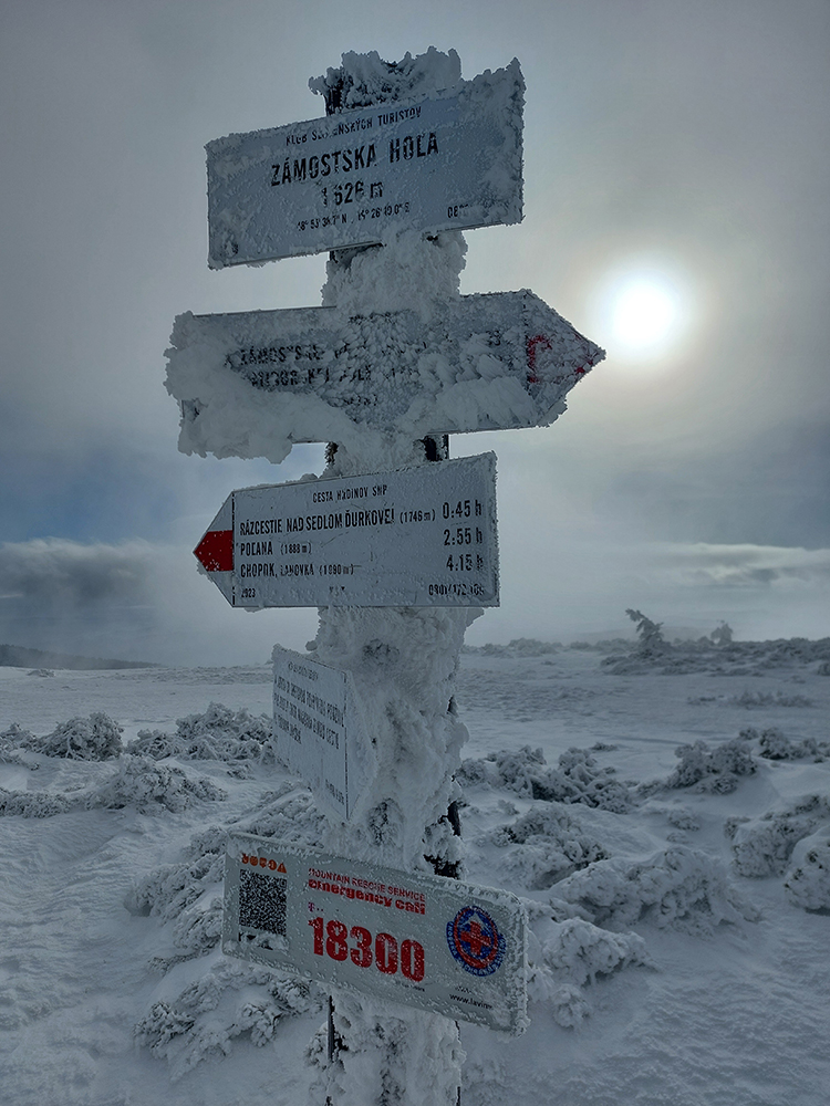 ...lebo niečo podobné som asi naposledy zažil na konci nonstop prechodu hrebeňa ( TU ) vo víchrici a s poriadne rozmočenými nohami. Pritom na sobotu 10.1. bola predpoveď relatívne dobrá – mrazy aj vietor mali dočasne povoliť, aj mraky sa mali postupne rozpúšťať. No máš vidieť! Všade pekne, len just na nízkotatranskom hrebeni mlieko plnotučné. To by ale až tak nevadilo. Najmä som si veeeeľmi naivne myslel, že po ostatnom snežení sa na hrebeň niečo ulepí. Máš ho vidieť po druhý raz! Pod pásmi buď ľadová rašpľa, alebo tráva, alebo kamene, alebo ak nebodaj sneh, tak hnusný prepadák bez základu, zato s kôrou navrchu. A na konci, kde sa konečne dalo polyžovať, som v hnusnej, predvečenej difúzke prd videl. Proste ideál :-) Tak keď už som sa tam tak bezprizorne motal a vrátiť sa mi nechcelo, povedal som si, že aj takô musí byť a ide sa trénovať tá odolnosť. Ešte, že som nebol až taký úplne naivný a vzal som kameňáky a najhoršie pásy (prežili). Trasa inak klasika, ktorú pozná každý, dokopy 40 km a 2500 výškových, ale za 8,5 hodiny, to hovorí asi za všetko: