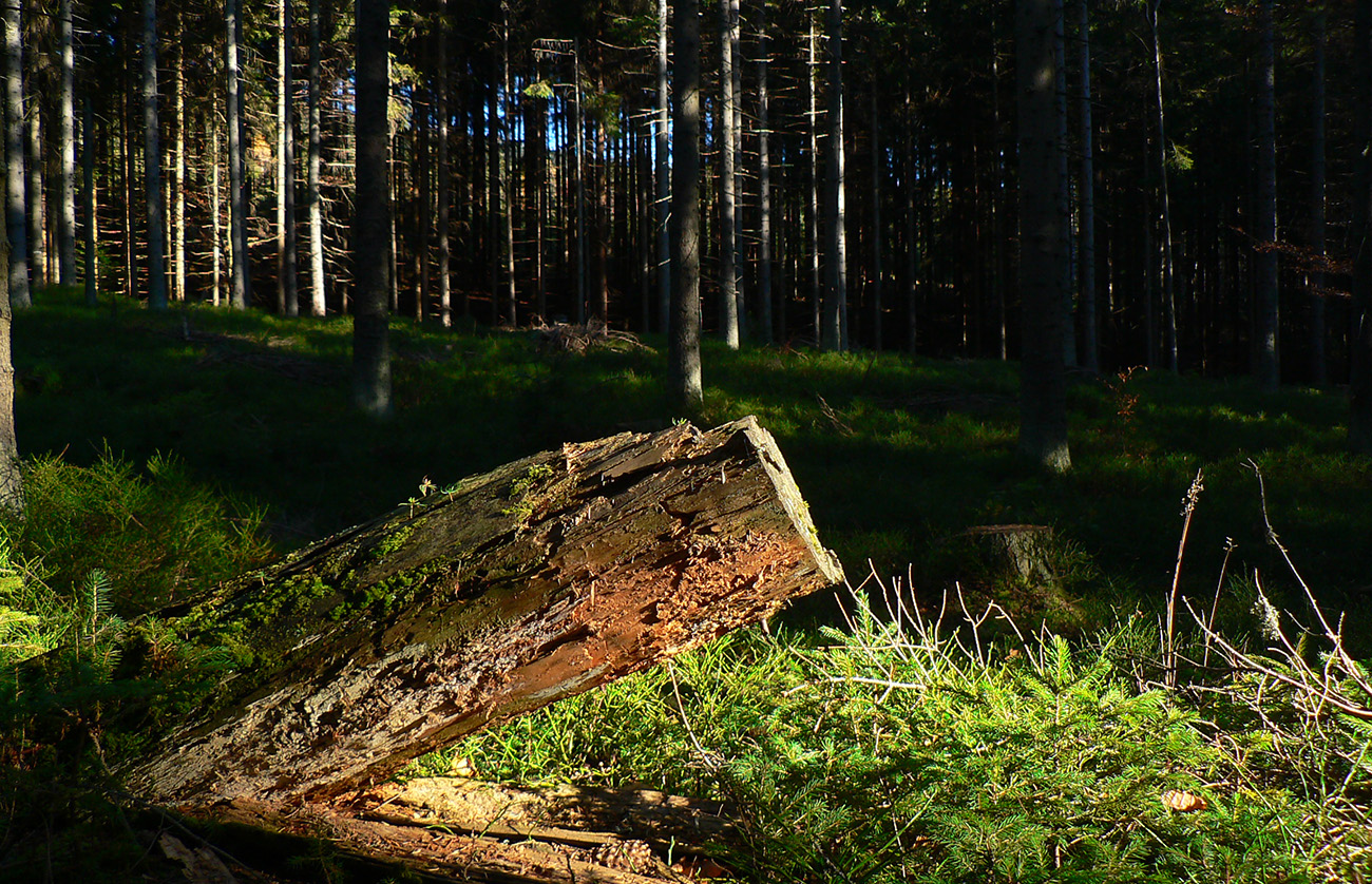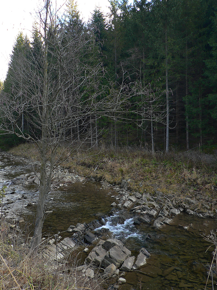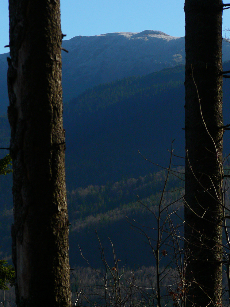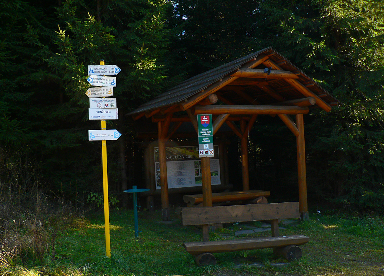 Smerovník ukazuje tri hodiny do Oravskej Polhory k busu, mám dve :-) Tak trochu kopem do vrtule. Najskôr chvíľa kľučkovania po holiach pomedzi kosovku a jalovce, potom strmo dole lesom. Žiaľ, veľmi rýchlo sa chodník mení na hnusnú zvážnicu – ja som ju mal navyše čerstvo načechranú po ťahaní dreva. Takto až po smerovník Borsučie, potom znovu príjemnejší chodník, až dole k potoku. A tam už klasika, najskôr šotolina, potom asfalt. Napriek tomu prechádzka príjemná, lesy tu vyzerajú zväčša dobre. Jasné, že sa v nich hospodári, veď drevo treba. Len by to mohlo ísť bez idiotských nápisov o „ochrane pôdy“ alebo o „lesoch ako chrámoch harmónie“. Najmä v susedstve obrovskej rúbane to pôsobí – no ako to slušne povedať? Škodoradostne?
