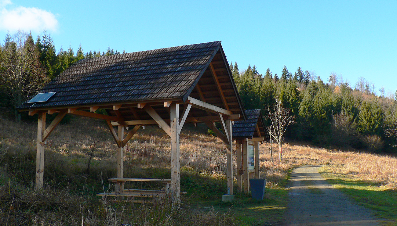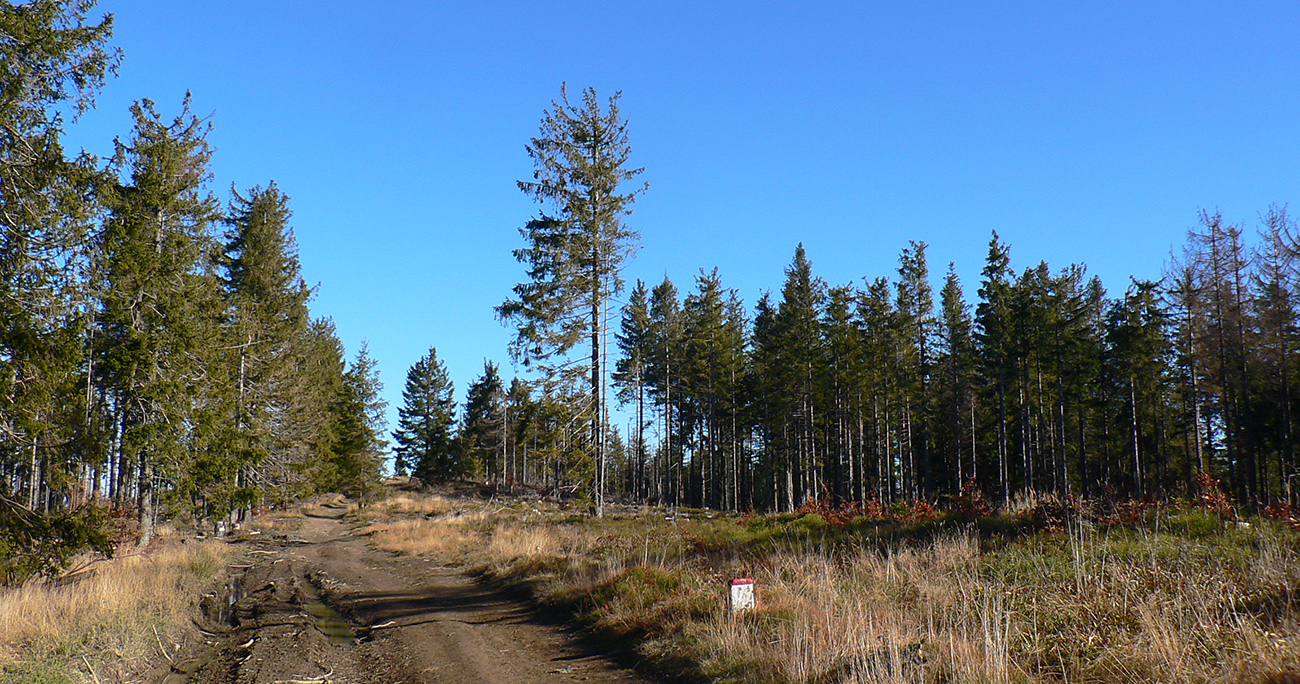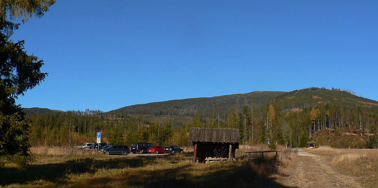 Nasleduje plynulé stúpanie na Javorinu, hraničný priesek je dosť široký. Ale často aj rozvláčený ťahaním dreva, na oboch stranách sú hospodárske lesy. Výhľadov pomenej a keď, tak na západ, na Žywiecke Beskydy. Za vrcholom zase strmé klesanie a dve odbočky: ku jednej útulni a nižšie k jednému prístrešku (všetko na poľskú stranu). Na chate možnosť dotankovať a v prístrešku možnosť dobiť baterky – normálne je tam solárny panel a dve zástrčky, až som čumel! Prístrešok je už na poľane Głuchaczky, za ktorou začína ďalšie dlhšie stúpanie, už na Modralovú.