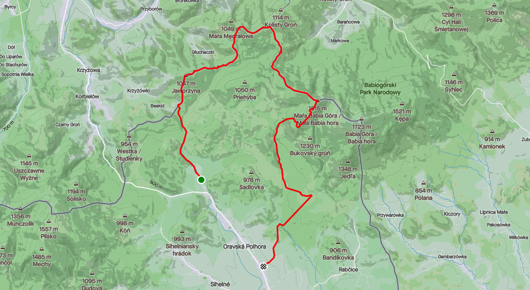 Doslova expedícia, lebo dostať sa do/z Oravskej Polhory, to mi zabralo viac času ako celá prechádzka. Ale zase – už aj dlhší čas som strávil cestou za kopcami :-) Polhora – Martoša – Modralová – Malá Babia hora – Slaná Voda – Polhora, to je koliesko asi tridsaťkilometrové, turisticky napočítané na necelých 10 hodín. No išiel som naľahko v „ultraštýle“, lebo som chcel aj autobus stihnúť, tak som musel v závere trochu kopnúť do vrtule. Ale zase - dole pod Malou Babou horou som si to ešte trochu predĺžil odbočkou cez Hviezdoslavovu aleju. Počasie som vychytal na november parádne – ráno trochu hmlisté a primrznuté, potom už krásne, slnečné, aj sa dalo na najvyššom bode v suchej tráve povyvaľovať. A našťastie sucho bolo, lebo na viacerých miestach to tu myslia až moc vážne s ťahaním dreva priamo po turistických značkách. Aj keď na druhej strane, treba si uvedomiť, že v prvom rade sú to lesné cesty, to zas hej, no... Každopádne sa oplatilo, najmä v jesenných farbách je to pekná prechádzka (zdroj: https://www.strava.com):