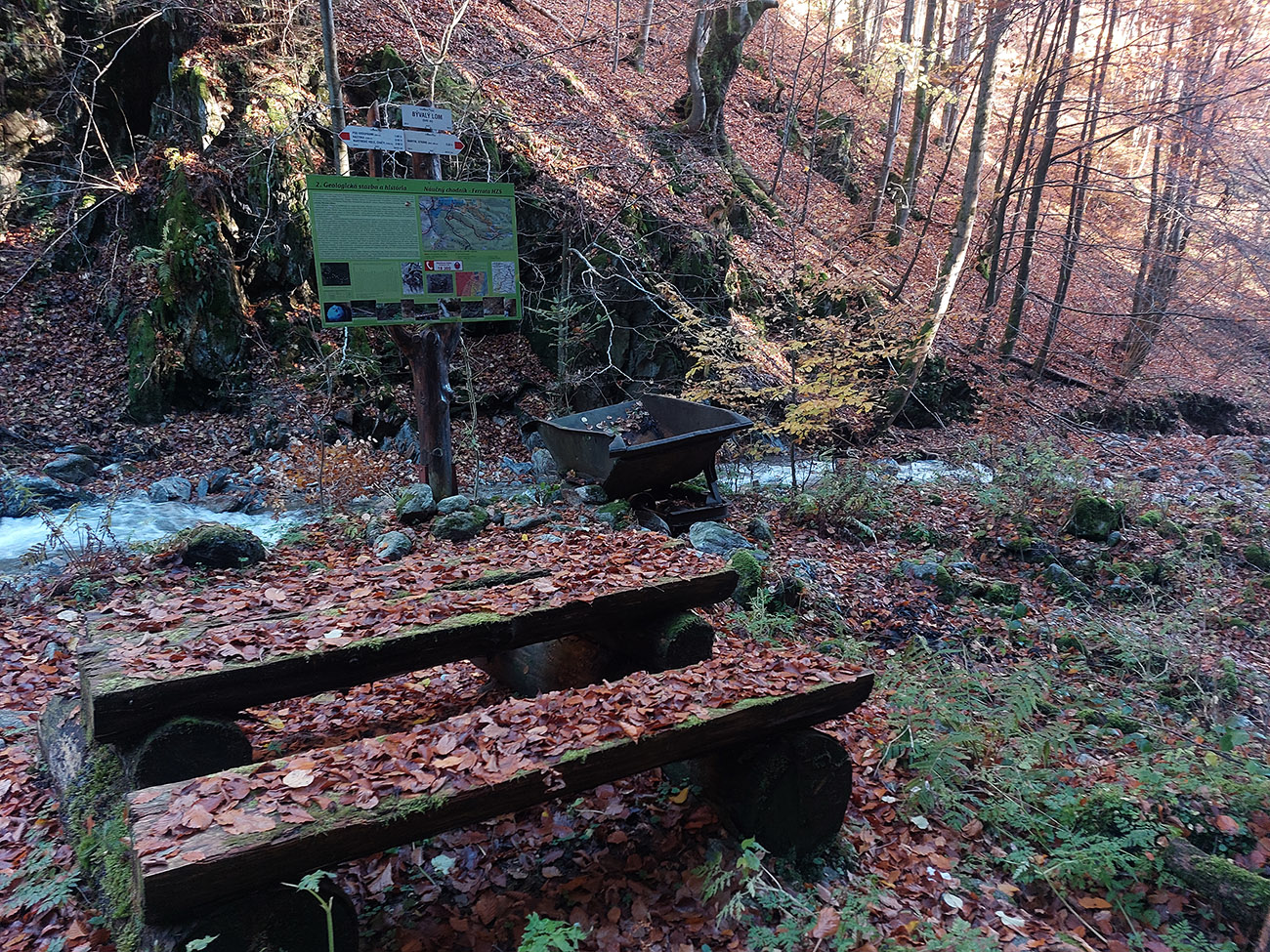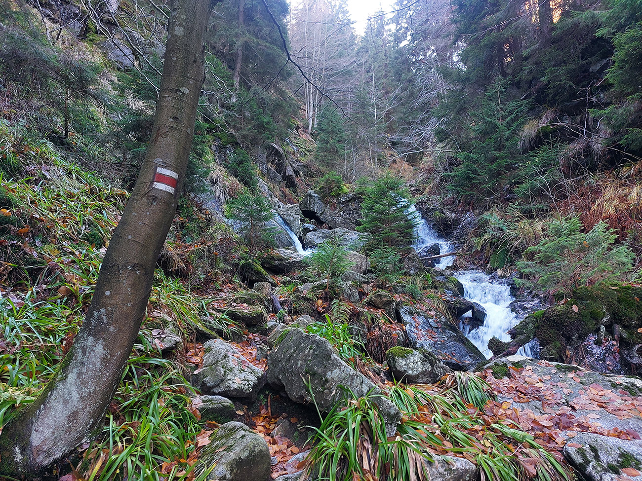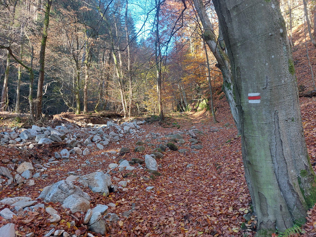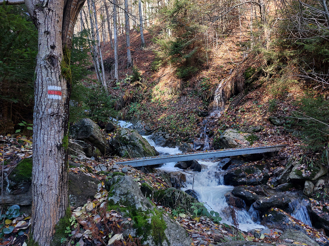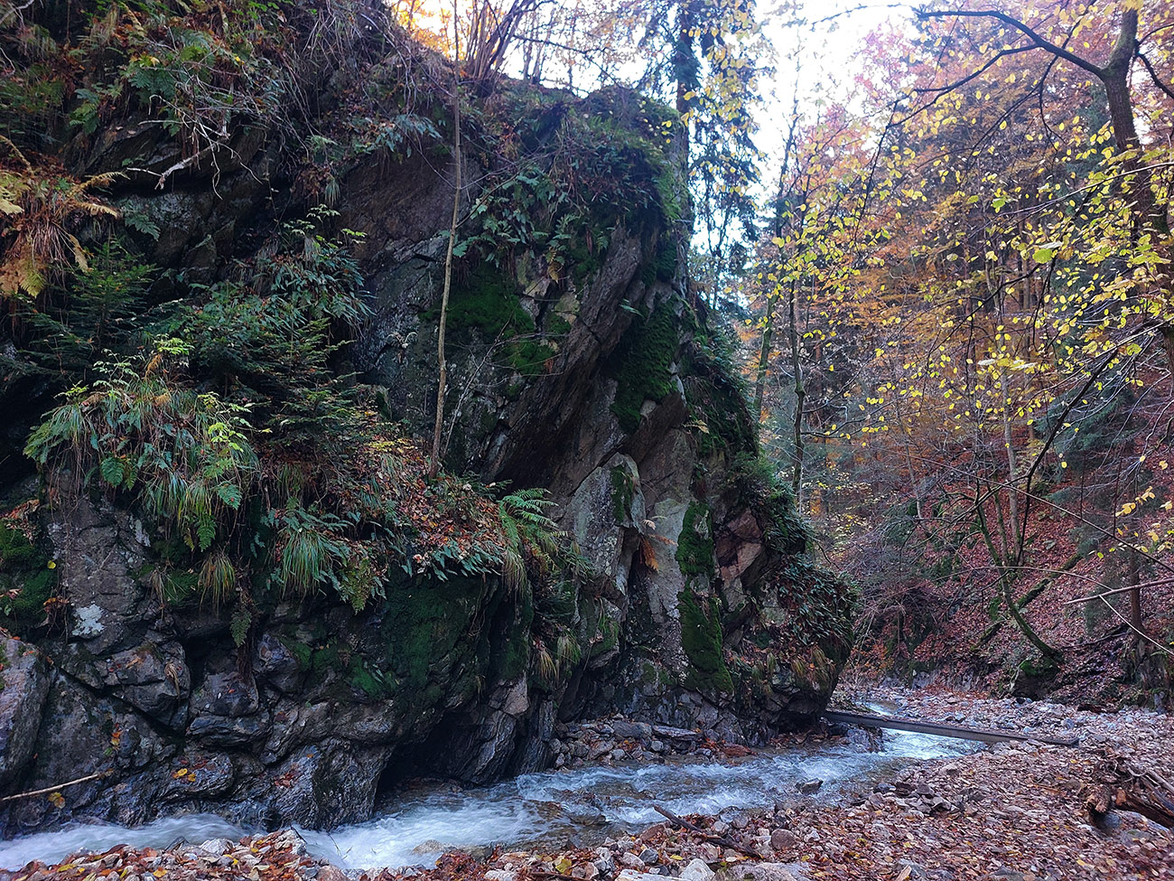 Po silných búrkach v polovici septembra sa Mlynskou dolinou a jej Pivovarským potokom prehnala blesková povodeň a trochu to tam „upratala“. Potok si na pár miestach preložil koryto, najmä v spodnej časti červeno značeného chodníka, hneď nad chatami. Aj parkovisko trochu „upravil“ a pobabral pár kusov vybavenia ferraty. Bežala zbierka na Donio.sk a jesennú sezónnu uzáveru využili dobrovoľníci na pár nevyhnutných opráv a aj úprav chodníka. Potom už jelene doručali, tak od 1.11. je ferrata otvorená znovu, je komfortne priechodná v celej dĺžke: niečo vyše štyroch kilometrov a 750 výškových metrov. Viac údajov škoda dávať, všetko je na STRÁNKE ferraty, a aj tak to tam už všetci poznajú :-) Jesenné usmoklené počasie sa ale pred dušičkovým víkendom konečne umúdrilo a nechalo prírode naplno sa vyfarbiť, no nechoď tam...