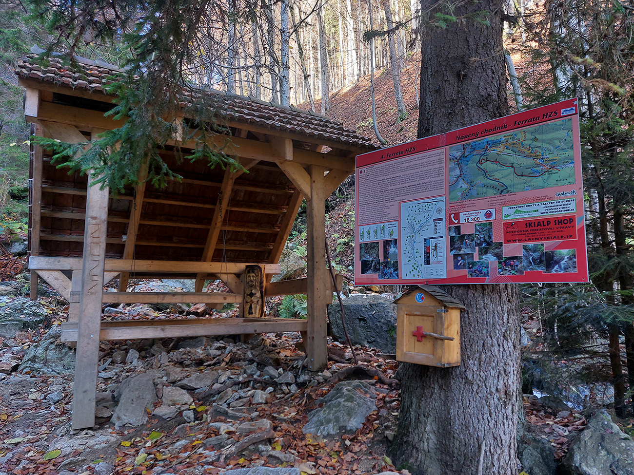 Napríklad niektoré pôvodné drevené mostíky dávno doslúžili, dnes sú všetky hliníkové. Aj technické prvky boli na niektorých miestach nahradené a niekde aj trochu posunuté. Takže vychutnajte si fotečky z celej, vynovenej, opravenej a hlavne miestami aj jesenne plnofarebnej feratky, najstaršej na Slovensku. Popisy som pod fotky moc nedával, len tam, kam treba, žeby bolo všetko jasné :-) Šťastnú cestu!