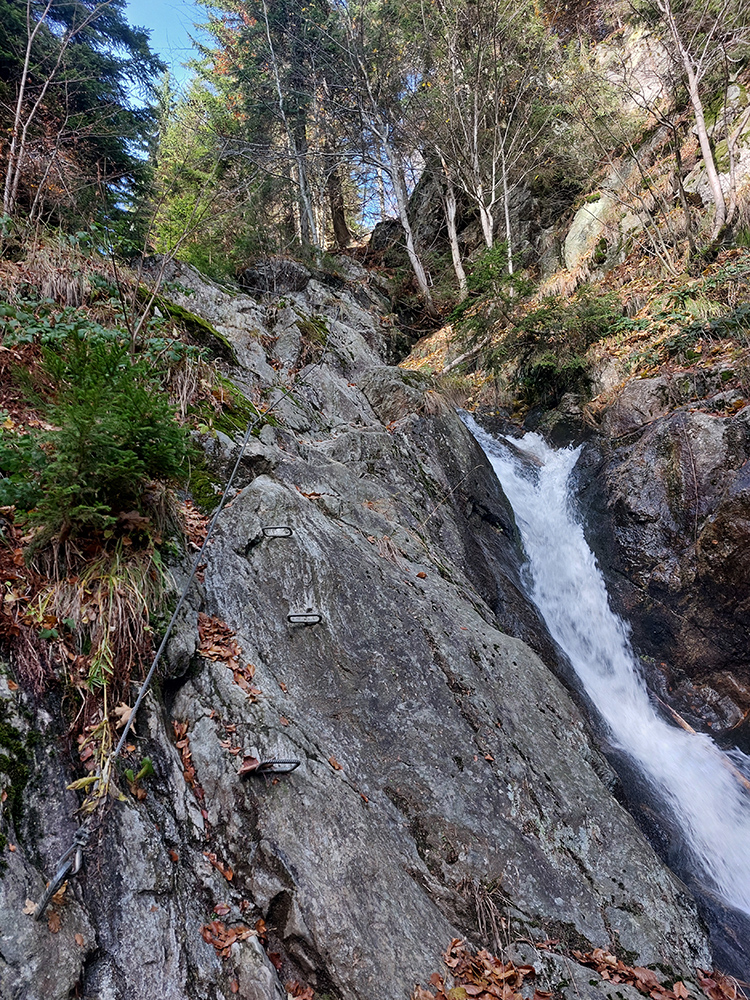 Len pre pripomenutie: náročnosť A, B, v závere pravej vetvy kúsok C (aj so sprchovaním ako bonusom), len na niektorých miestach, popri niektorých vodopádoch tí s kratšími nohami môžu mať trochu problém dočiahnuť stúpačky, inak to nie je náročné. Zato krásne, ako vieme.