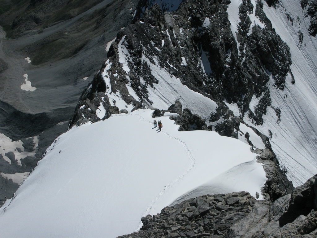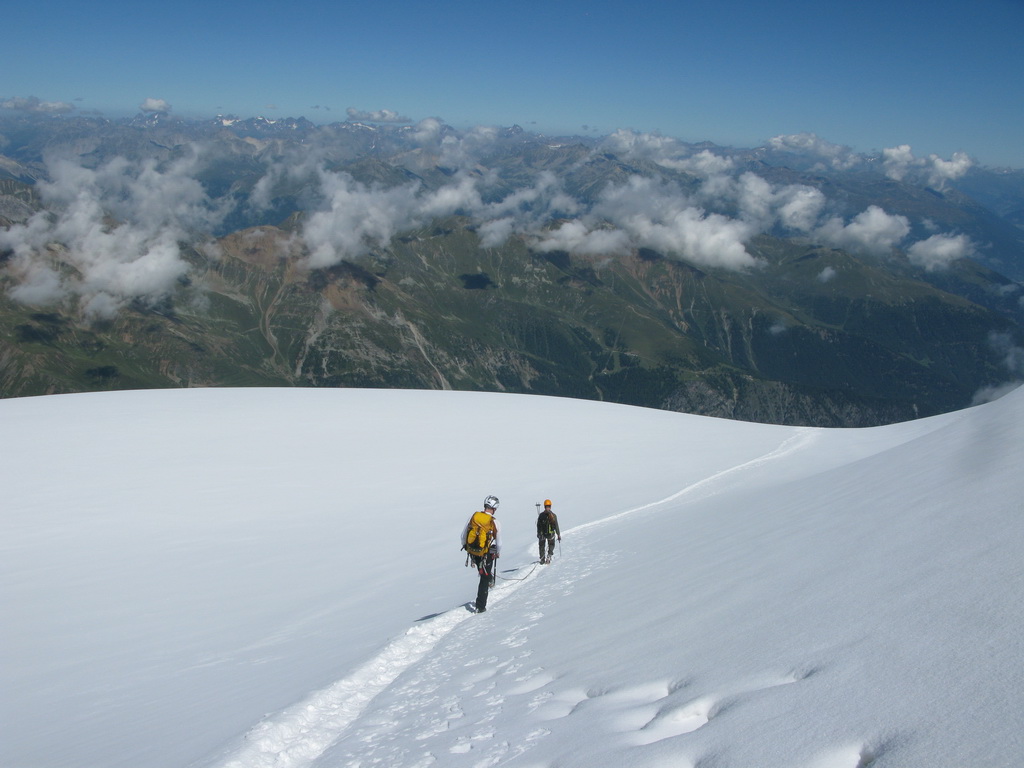 Tip: V prípade prudkého zhoršenia počasia pri výstupe na vrchol je na zváženie pokúsiť sa zostúpiť naspäť dole po Hintergrate. Je to určite bezpečnejšie ako sa zapráskať dakde na ľadovci. Normálka nie je zase až taká normálna, ako by sa mohlo zdať.