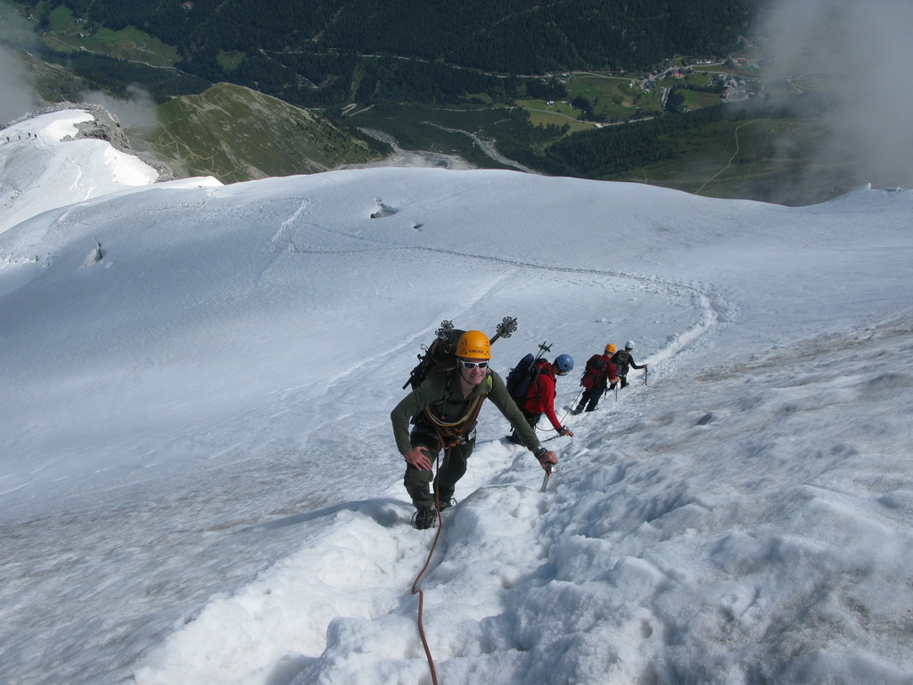 Počas mojich dvoch výletov na Ortler som sa našťastie s týmto problémom nestretol. Po výstupe Hintergratom som pri zostupe po ľadovci dokonca využil ponuku dvoch Rakúšanov a cez trhliny som prešiel spolu s nimi, naviazaný na lane. Takže som nemusel vôbec riskovať.