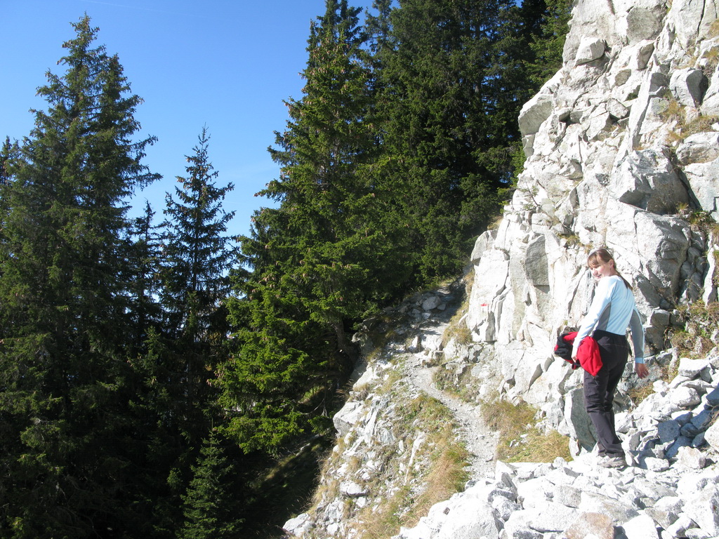 "Nejde tam oficiálna značka, ale je to taká tajná trasa pre domácich. Je čiastočne zaistená oceľovým, čiastočne konopným lanom, miestami treba liezť nezaistený. Obtiažnosť cca 2+." Vysvetľuje Jens.