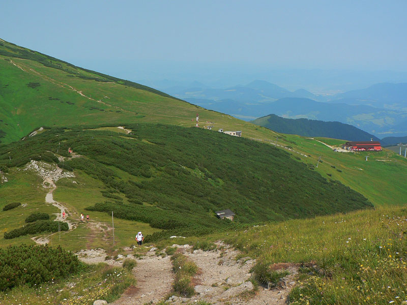 Ten prvý výšľap (na Kraviarske) bol asi najpríjemnejší, s výhľadmi a popri kosovke. Nasledoval kamenitý otvorený hrebienok, zošup do lesa a prudko hore lesom na zalesnené Žitné. Odtiaľ ešte prudší hlineno-kamenný zostup a následné strmé kľučkovanie pomedzi ostré skaly na Baraniarky. Miestami bolo treba zapnúť náhon na všetky štyri. Tu sa ale aj pekné miesta našli, dokonca nejaké reťaze a zábradlíčka. Do sedla Príslop to bolo asi najdlhšie a najhoršie z kopca. Súcitil som s ľuďmi, ktorí sa asi bez väčšej prípravy vybrali opačným smerom, keď sa ma pýtali ako je to ešte ďaleko. A kam? "K lanovce!" Znela odpoveď. Tak som pre istotu len zaželal šťastnú cestu :-) Lebo väčšina sa netvárila šťastne pri tom výstupe :-)