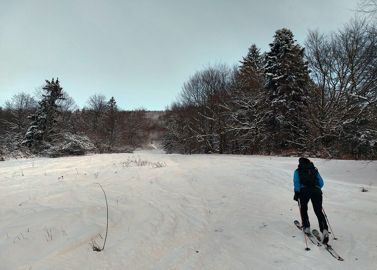 Chleb (v stredu z Trusalovej): Generál klasicky bubnovatý, horná, rovnejšia časť bez prekážok, v strmine kríčky a jafury ako slalomové bránky trčia na vrcholoch, je to vyšmýkané, všetky zrady viditeľné. Potom už dole cestou, kde len občas kamienok spod snehu ratračím pásom vyhodený striehne a na vari dvoch strmších miestach sú nejaké väčšie vyorance rozhádzané. Keď sme my za tmy nič nepochytali, za svetla no problem. Z drevoskladu aj les polyžovaný, ale išli sme slušne po turistickej zelenej až na Zajacovú, a zas – v strede občas piranie mláďa hlavu vystrčí, ale žiadne súvislé húfy tam nie sú, všetko obíditeľné. Turistický chodník zo Zajacovej do Trusalovej taký užší – pekne vyleštené výstupové stopy a popri nich sa v hlbšom snehu dá, ale bacha na skryté konáre. Po ceste je to rýchle, rovné, ujazdené autami, takže predvídateľné. Zlyžovali sme až k Markovi po okraji odpluhovanej cesty, úplne v pohode.