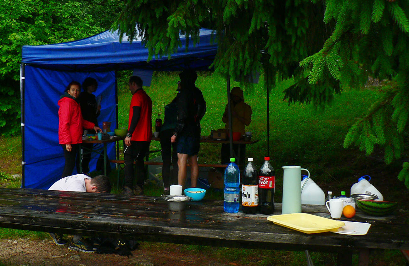 Možno aj kvôli obžerstvu sa z 97 štartujúcich ultrášov do cieľa vo Fačkove doknísalo len 59 kusov, poriadne zablatených a mokrých. Lebo nástrahy na MF100 nestriehnu len na hrebeni v podobe búrok (minimálne dve sa tentokrát prehnali), v lesoch v podobe ľudožravých medveďov (tento rok 47, oproti 32 pred troma rokmi), ale aj na kontrolách v podobe plných krmelcov. A ani tie výhľady nič moc, že? Jednoducho účasť tu treba starostlivo zvážiť – upozorňujem na to furt a nikdy nepochopím, prečo bola štartovka zase vopred vypredaná.