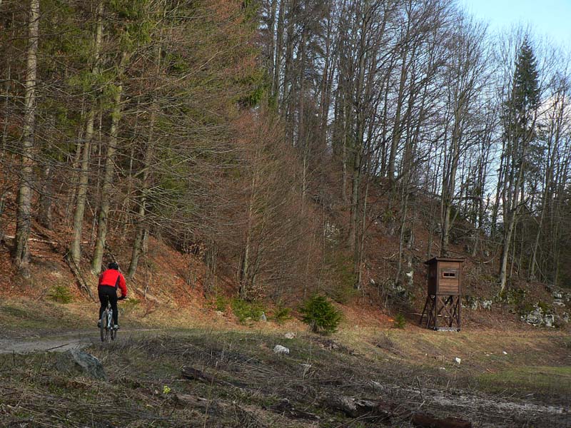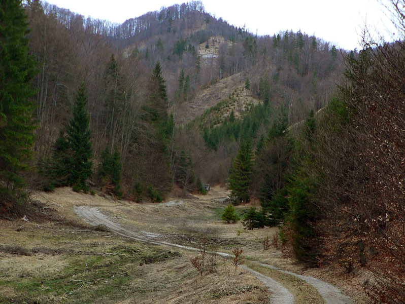Hore v sedle (približne 900m n.m.) sú dve možnosti, ak nerátame asfaltku: po zvážnici smer Kráľova studňa alebo pokračovanie starou cestou (inak žltá TZT) dole kopcom. Na začiatok len jedna serpentína, pozor na konáre pod hrubou vrstvou bukového lístia. O chvíľu je to už ale len rovný zjazd dolinou Bielej vody po čoraz civilizovanejšej lesnej ceste, spestrí to prejazd okolo ústia vetracej šachty toho nášho najdlhšieho tunela. Riadny komín je to! Bystrická strana cesty je vďaka bralám pestrejšia a strmšia, toto je na taký rodinný výlet. Cesta ústi na hlavnú pri horskom hoteli Bartoška, kúsok nad železničnou stanicou Čremošné. Posledný kilometer je to dokonca do kopca, kto by to čakal?