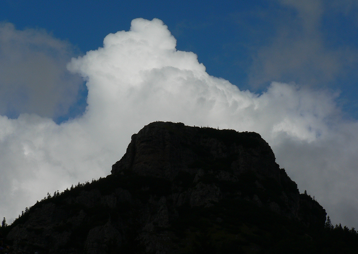 Neskôr hore na vrchole Malého Rozsutca príjemné teplo augustového slnka už vysušilo skaly, okolité kopce svietili v ostrom svetle vďaka vzduchu, prečistenému dažďom. Doliny a kotliny v okolí ešte utopené v bielej perine, z ktorej trčali len najvyššie kopce - iba Terchová a Vrátna dolina ako zázrakom čisté svietili zdola.