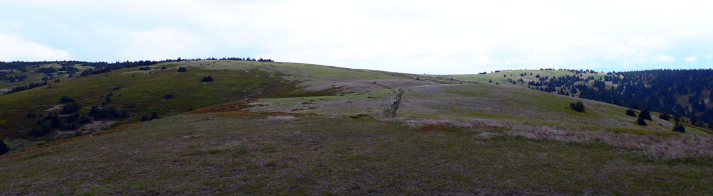 Ale treba ísť - takže o chvíľu už som pri smerovníku na hrebeni. Cestou sa ešte k chodníku pripája lesná cesta z juhu, z Trebostovskej doliny, hneď je jasné kade sa sem na bajku treba vydriapať. Raz som už výjazd sem hľadal, ale zdola a nenašiel som, budem musieť pozornejšie poskúmať.