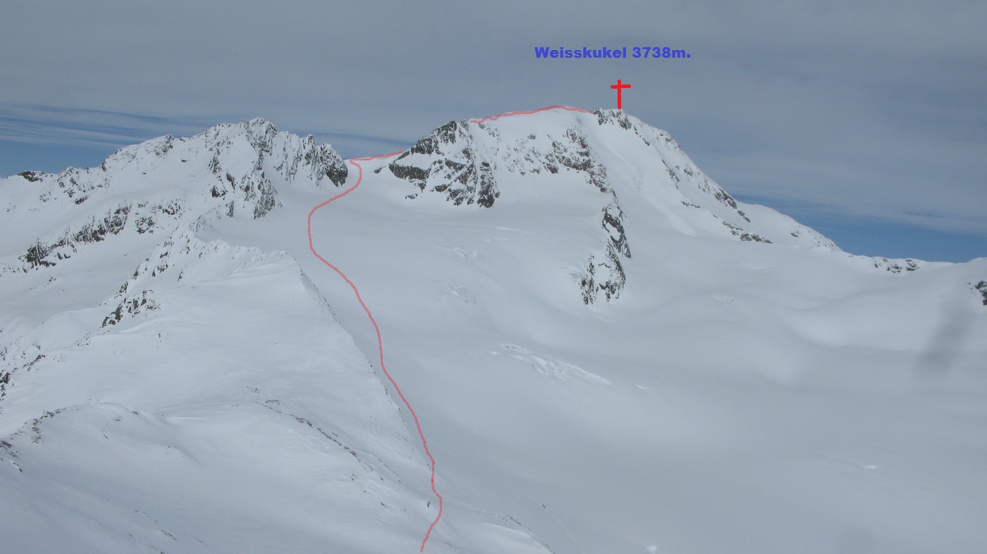Weisskugel 3738m je druhou najvyššou horou v Ötztalských Alpách a celkovo treťou v Rakúsku. Tento výrazný a nad svoje okolie vytŕčajúci vrchol je súčasťou hlavného hrebeňa Ötztalských Álp a zároveň významnou križovatkou, z ktorej vybiehajú štyri horské hrebene.