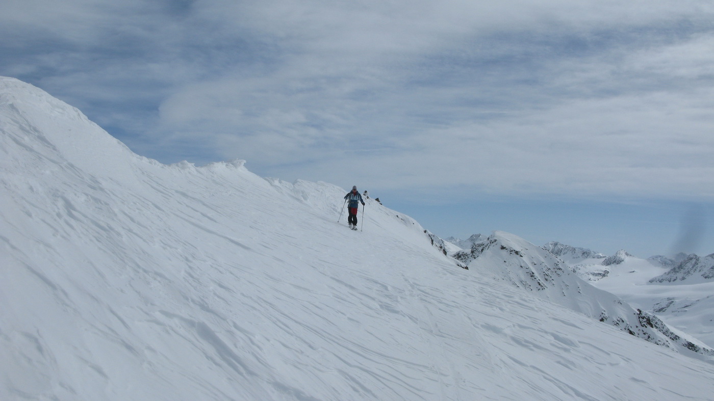"Na hrebeni sa nepokúšajte zísť hneď dole na ľadovec, ale choďte stále po ňom až zbadáte miesto, kde je ľahký zjazd dole!" poradil nám domáci znalec Hans a jeho radu sme ocenili, lebo na mape to bolo zakreslené zle.