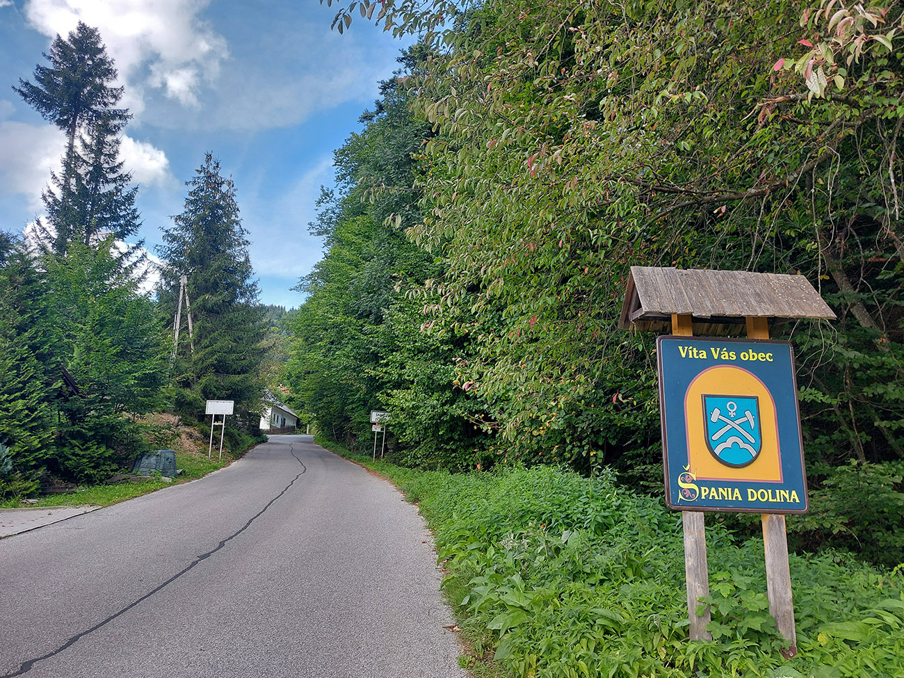 Na námestí teda doľava a začiatok výživnej finálovej päťstovky je priamo pri známych krytých schodoch do kostola. Cesta hneď naberie brutálny sklon a šírku len takého lepšieho chodníka (oba parametre až do konca), tak ak zhora pôjde auto, slabší kus môže mať aj problém. Ale nejaké vyhýbacie miesta sú. Koniec je na „Alžbetke“, pri smerovníku a pomníku.