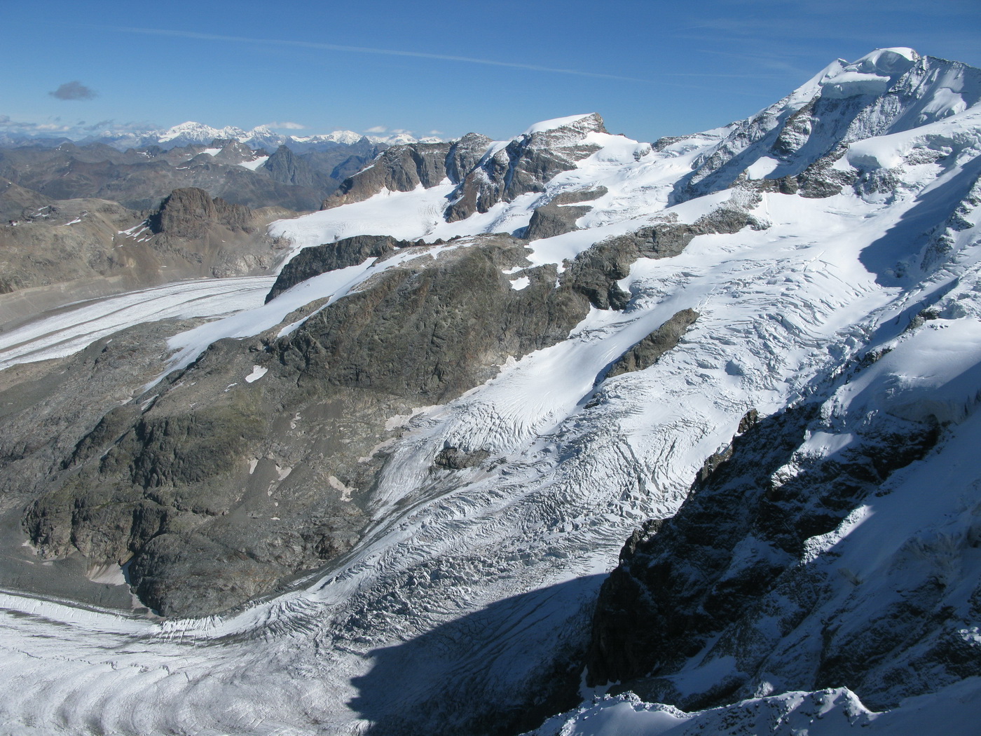 Slováka s Čechom stretávam až pri zostupe Biancogratom. S tými ťažkými batohmi a stanom to je iné sadomaso. Až o pár dní sa dozvedám, že sa k chate Marco e Rosa prebojovali o ôsmej večer. Chata už bola zavretá, ale je tam winterraum.
