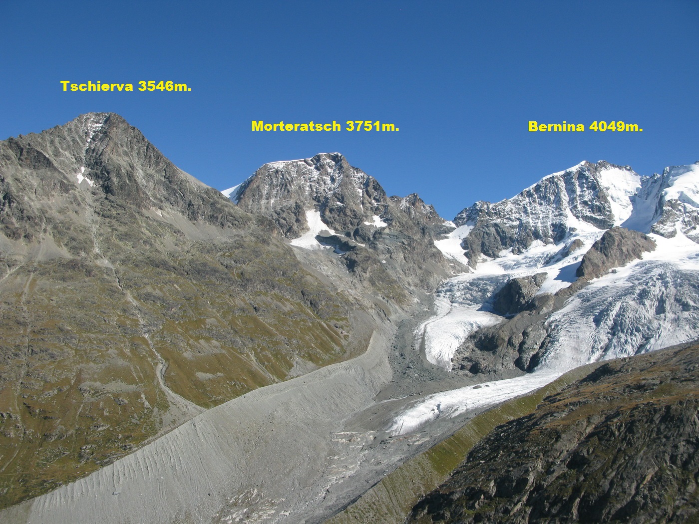Pred hotelom je odbočka na turistický chodník (pred mostom), vedúci k chate Tschierva. Oficiálnej základni pre tento výstup. Od hotela treba rátať s cca dvomi hodinami výstupu, s nabaleným batohom a topánkami, na ktoré sa dajú pripnúť rýchloupínacie mačky.