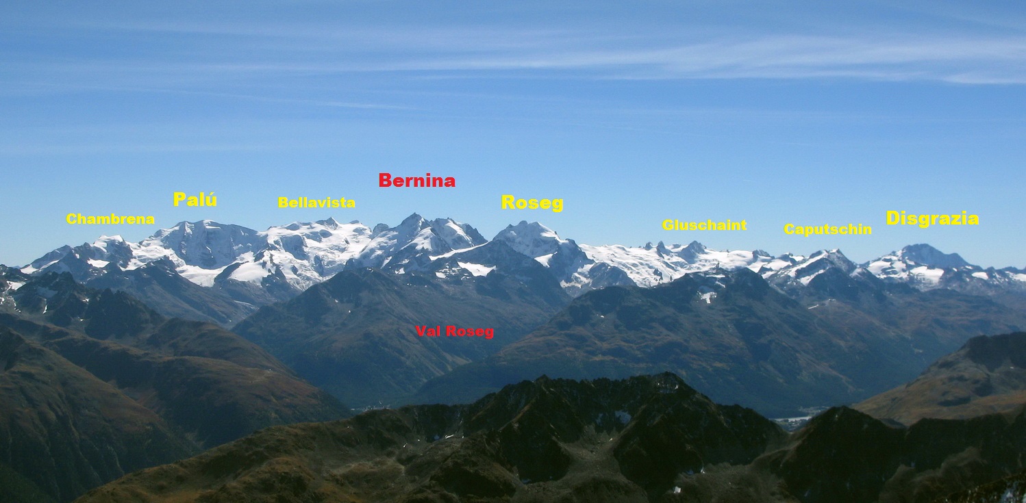 Piz Bernina (4049m) je najvýchodnejšou štvortisícovkou, najvyšším vrcholom tzv. Berninských Álp a zároveň aj najvyšším vrcholom a jedinou štvortisícovkou Východných Álp. Nachádza sa v juhovýchodnom Švajčiarsku na hraniciach s Talianskom. Najľahší výstup na vrchol vedie hrebeňom Spalla (obtiažnosť II., PD). Na tento hrebeň sa dá dostať z talianskej a rovnako aj zo švajčiarskej strany. K výstupu je hojne využívaná chata Marco e Rosa (3609m.) Zo švajčiarskej strany vedie prístupová cesta skalným hrebeňom Fortezzagrat a potom ľadovcovým balkónom Bellavista. Táto trasa nie je obzvlášť technicky náročná (II. UIAA), problémom je dĺžka a prechod ľadovcom s trhlinami.
