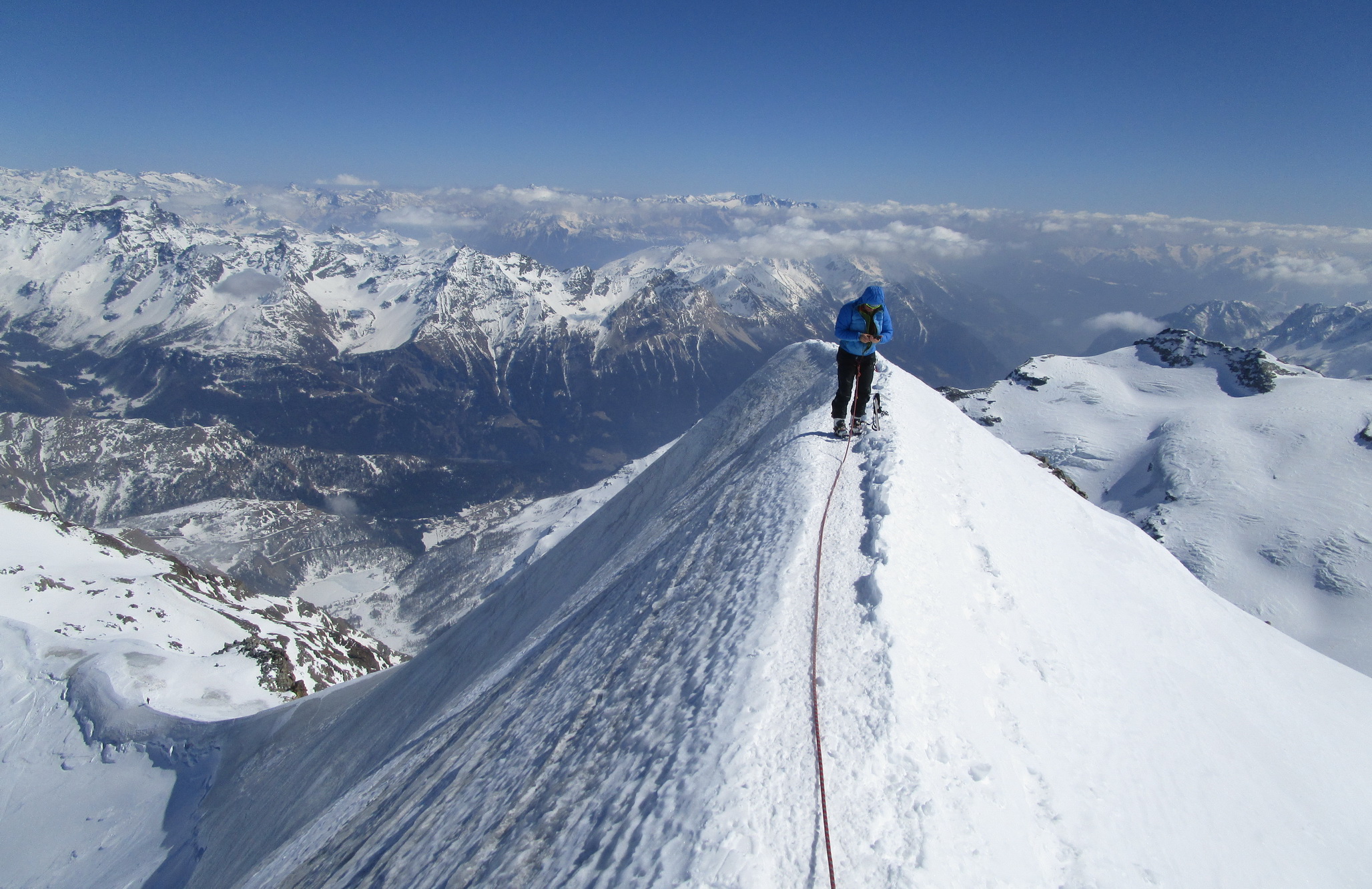 Bol som tu dnes štvrtý krát ale ľadovec a vrcholový hrebeň boli zatiaľ v najhoršom stave. Trhliny sú každý rok horšie. Napriek tomu sme stretli dvoch ľudí ktorí išli sami. Rovnako sme ale stretli viacero skupiniek ktoré to otočili a nevyšli až na vrchol, niektoré ani do sedla.