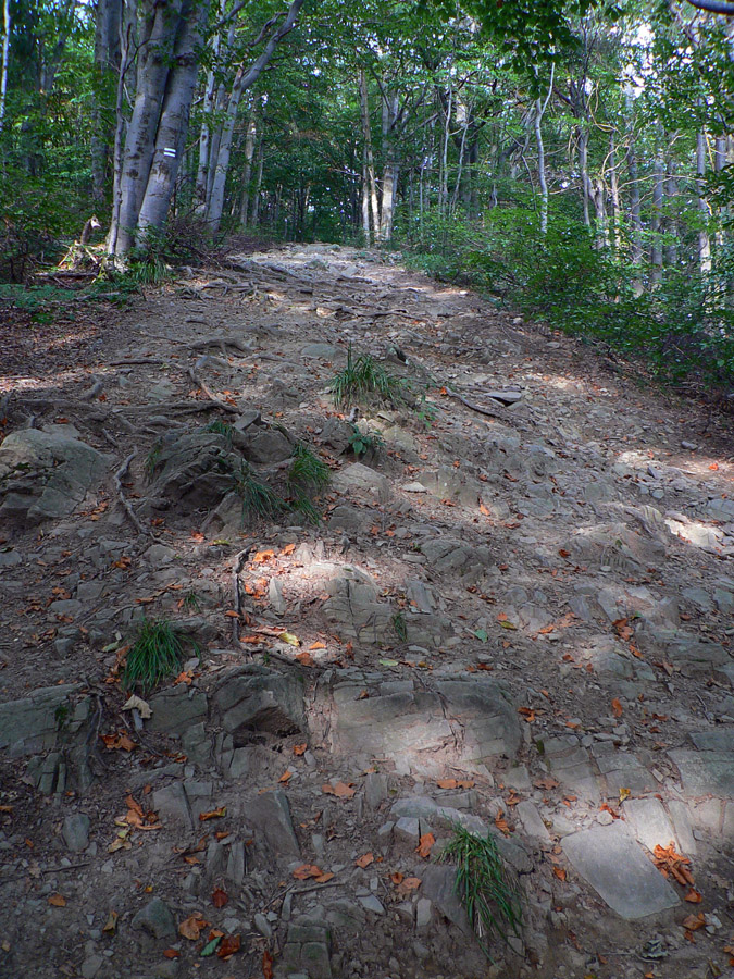 Zato nás čaká pekný deň, striedavo v tieni lesa a na poloninách s výhľadmi. A čučoriedkami :-) Ideme cez Borsukov vrch, Čelo, Jarabú skalu, Ďurkovec, Pľašu a Kruhliak do Ruského sedla. Tam je ďalšie oficiálne táborisko. Necelých 20km a šesť hodín, ale nabalenému na ťažko je to tak akurát. Aby to bolo na pohodu.