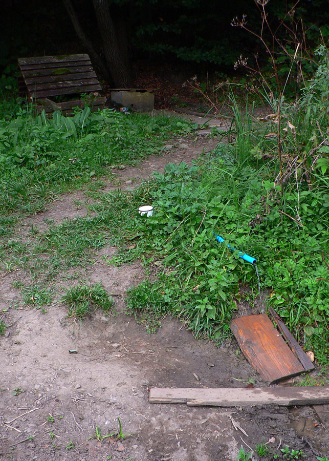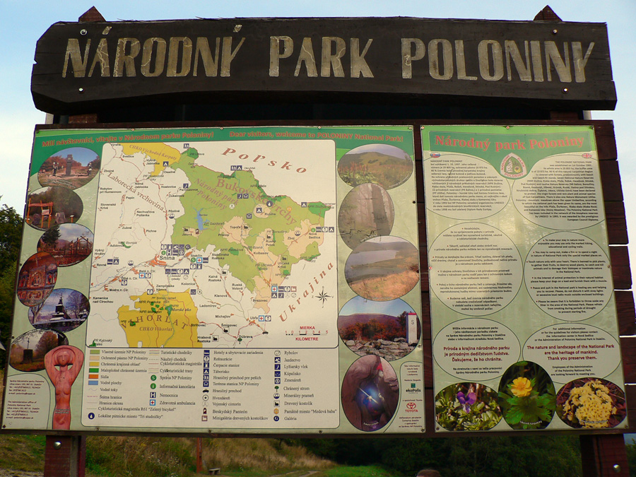Ruské sedlo, voľakedy cestný hraničný prechod, podľa starých fotiek sa tu dokonca dalo dotankovať palivo do auta :-) Tabúľ, smerovníkov a značiek je tu neúrekom, ale my ideme obzrieť, kde to chceme spať. Kúsok od hranice, na našej strane, rovnaká útulňa ako pod Čierťažou. A rovnako obsadená hulákajúcou partiou pripitých Poliakov. Tak vďaka... Na stan tu ani nie je nikde dosť miesta, tak len sa opláchneme v prameni a dotankujeme v ňom „palivo“ aj my, a ideme hľadať nocľah nižšie.