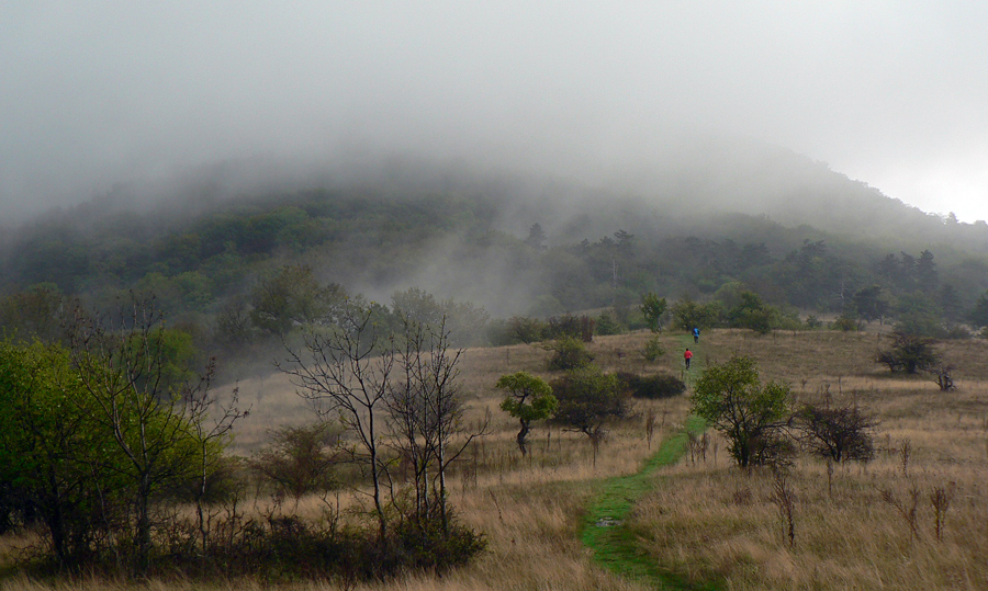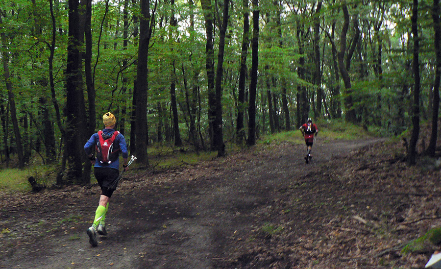 Hmla tentoraz sedela už na Zobore, Žibrici aj na Tribeči - tam sa v lese miestami dokonca zotmelo tak, že to už bolo skoro na čelovku. Pod nohami mokré lesné cesty, na rovinkách miestami dosť blata, ale vo svahoch to ani moc nekĺzalo. Bolo to väčšinou také "akurát" vlhké, že to nohy držalo a moc sa to nelepilo. Samozrejme mokré korene a zablatené kamene pri zbehu zo Zobora, zo Žibrice, z niekoľkých ďalších prudkých svahov, ale najmä na konci z Vtáčnika boli "vítaným spestrením". O bonbóniku pod záverečným Veľkým Gričom netreba hovoriť, to bolo za odmenu pre každého, čo to nevzdal :-)))