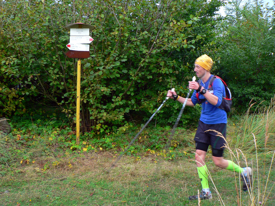 Namiesto rany z pištole sa ozvalo potichu: "tak nech tu nezavadziame, tak nejako kontinuálne to odštartujeme..." :-) A šlo sa. Teda vpredu sa zúrivo bežalo. Čerstvo pokropenými ulicami sa v ústrety zahmlenému Zoboru najsvižnejšie rozbehol Patrik Hrotek a podobne ako vlani jeho "stíhačkového parťáka" Iva Mudroňa, už ho nik nevidel, až cieľ ukončil jeho sólobeh. Už na K1 v Žiranoch mal 12 minút náskok. Za ním sa presýpala pätorka prenasledovateľov, z nej ostala po kontrole v Jedľových Kostoľanoch (približne polovica trate) dvojica. Novinkou boli časové limity na kontrolách, takže aj zadné voje si museli trochu švihnúť.