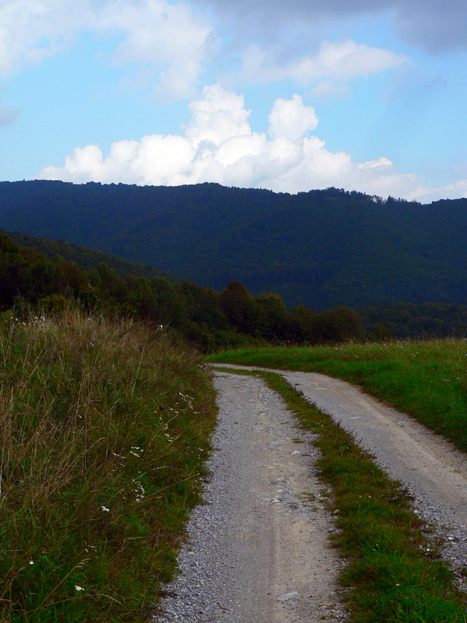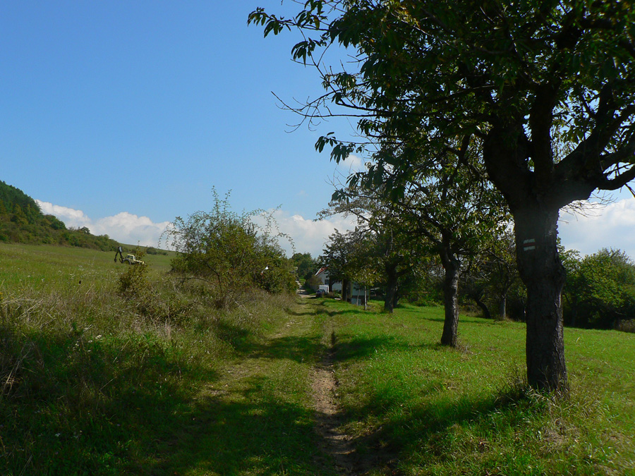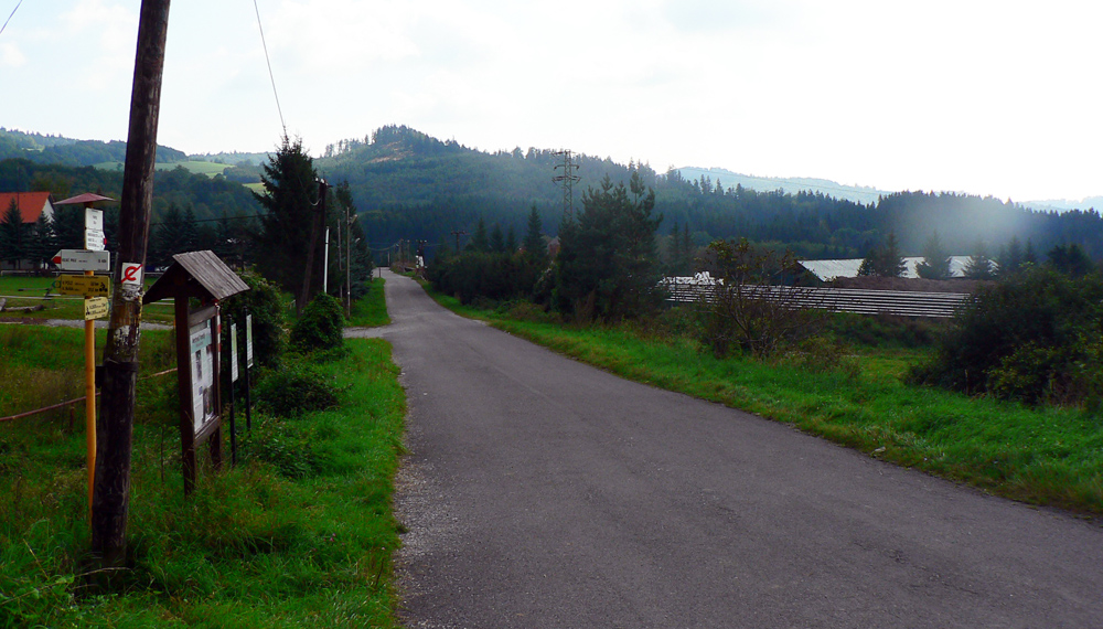 Zato pod horárňou Krížne cesty pravý opak, po zostupe vychádzam na zvážnicu dopŕhlený a zablatený až za ušami. Tu by som mal jeden návrh: práve tu by sa dala trať vyfáborkovať na krátkom úseku po ceste, napojila by sa na červenú presne na konci toho blbého úseku. Nejde o blato či žihľavu, ale v tej tráve nevidno pod nohy a dosť slizkých šutrov sa tam ukrýva. Veľmi nepríjemný úsek je to.