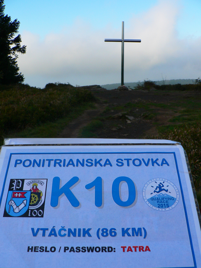 Vtáčnik organizátori olepili igelitom, kontrola je vo vrcholovej schránke, zostup je suchý, paráda. Mraky sú vysoko, slnko konečne nízko. Valím čo to dá, furt mám dojem, že ma každú chvíľu musí Vlado Tejkal chytiť. A ten nikde, zato pri vysielači páni vojaci (K11) a ich fajnéééé chlebíky s pažítkovou pomazánkou. V tom hice dole na nížine som do seba nedostal okrem vody nič. Ešte že sú gely, inak by som umrel už pri tých koňoch.