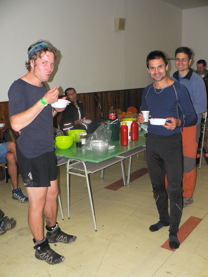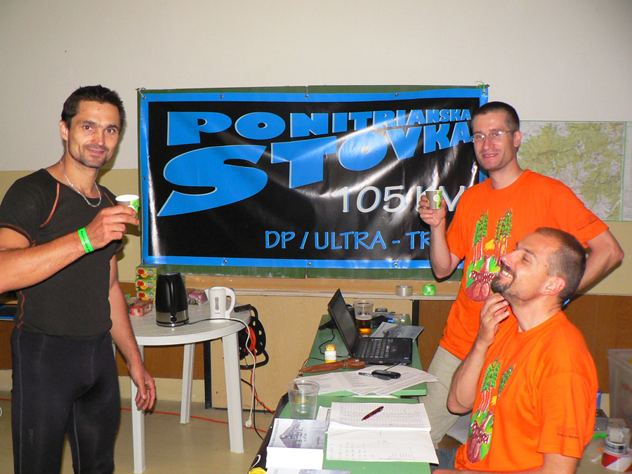 Veľké Pole - Jarabá skala: Ja sa na tento úsek naopak vždy teším - konečne budem vyššie, bude lepší vzduch, príjemne mäkko pod nohami, ožívam. Tak aj teraz. Dopujem sa pre istotu chémiou, aby sa ľahšie stúpalo na Rúbaný vrch, odkiaľ sa už dobre beží. Aj mi to celkom v tej dnešnej mizérii ide, keď zrazu sa okolo mňa preženie lokomotíva Tomáš Bizoň. Keď ja idem na Šlehu, čo si dal on??? Pod Tríbečom vyzeral biedne. Tiež opustil parťáka, ktorého vraj zradil žalúdok, a ide ako píla. O chvíľu ma ale predbieha zas: nejaký debil tam musel prehodiť fáborky náročky do zlého smeru! Uverili viacerí, Ivan Mudroň tak asi prišiel o striebro. V cieli padla myšlienka, že to bol možno krčmár zdola z dediny, aby získal klientov :-)