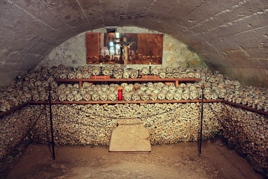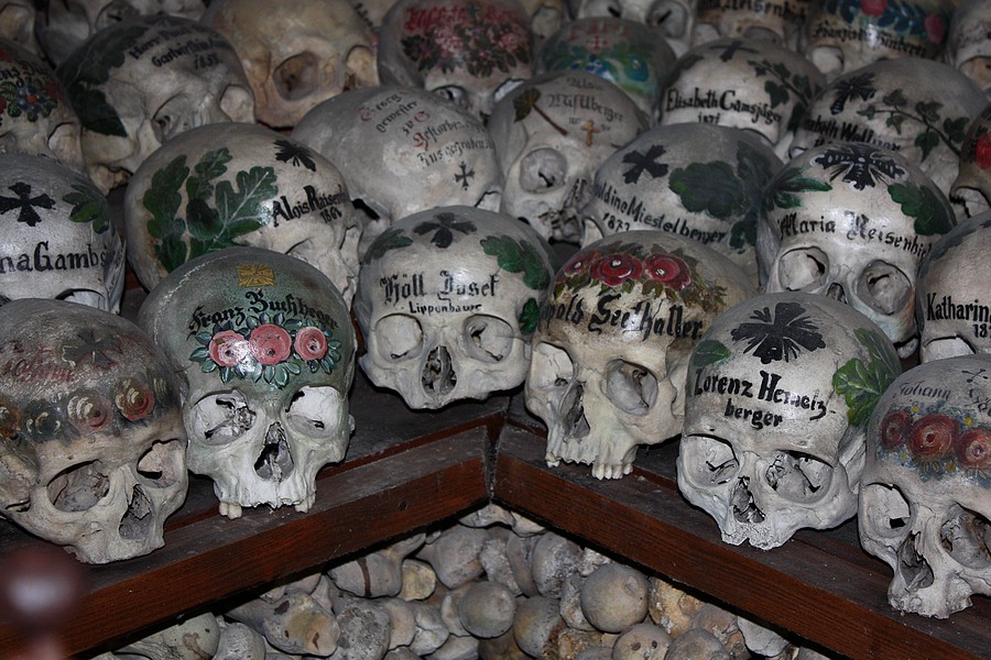 V srdci Hallstattu si každý nájde to svoje. Jednou z dominánt je Farský kostol z r. 1520. Jeho vysoký veža stráži vzácny neskorogotický krídlový oltár od majstra Leonharda Astla. Na skalnej terase severne od kostola leží cintorín. Jednotlivé hroby sú tesne vedľa seba a nadzemný kryt pokrýva len malú časť hrobu, takže to vyzerá ako v krajine Lilliputáncov. Kvôli nedostatku miesta sa po 10 rokoch telá exhumujú a lebky a stehenné kosti putujú do zbierky miestnej kostnice. Tá píše svoju históriu od 16. stor. a v súčasnosti obsahuje vyše 1200 ľudských lebiek a kostí. Väčšina z nich je ozdobená menom nebožtíka a maľovanými kvetmi alebo lístím. Raritou je lebka so zlatým zubom. Kostnica zapĺňa prízemie Michalskej kaplnky, na poschodí nad ňou možno objaviť barokový oltár či kazateľnicu a kamenné artefakty používané kedysi pri zádušných omšiach.