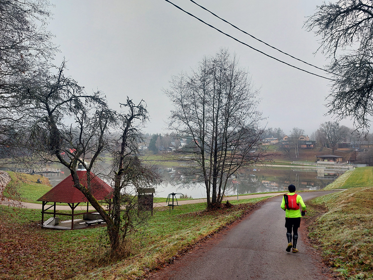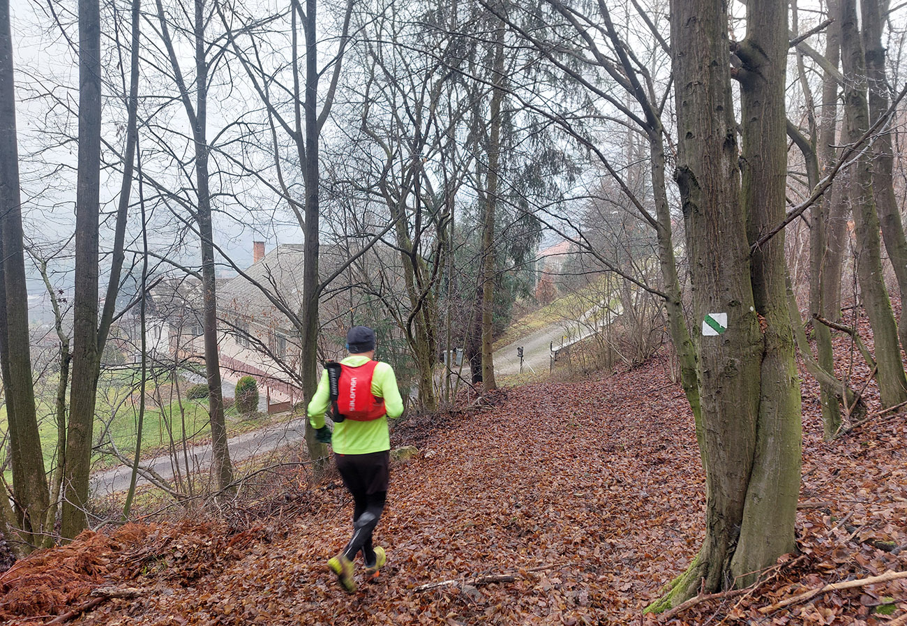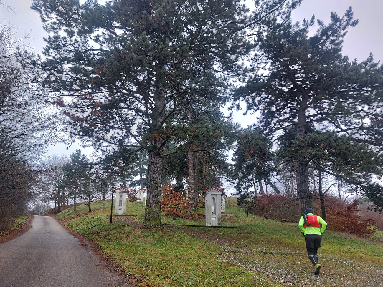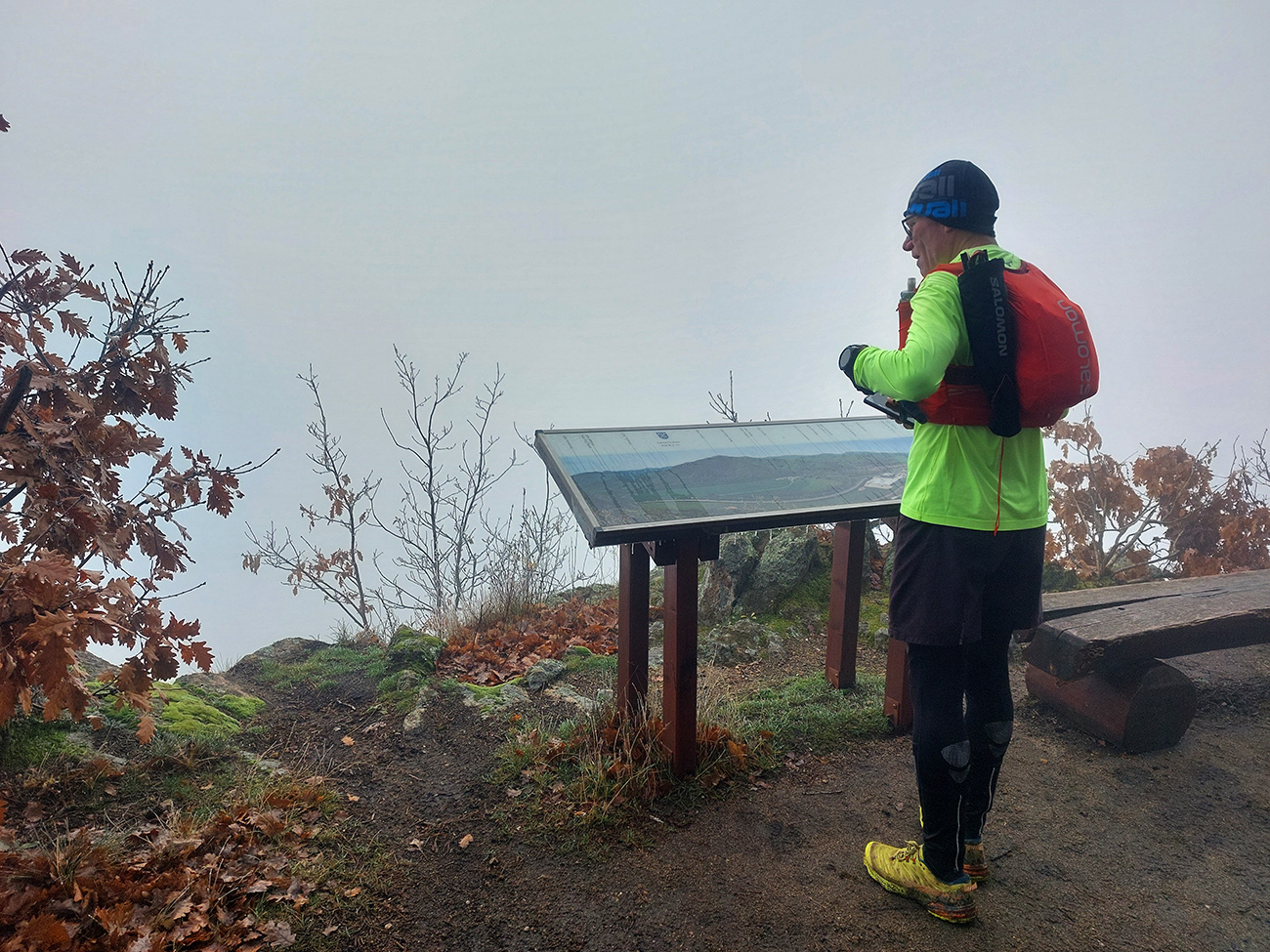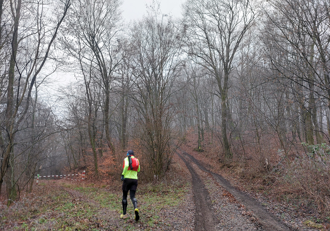 Sychravá jeseň s inverziami v polke decembra? Ozaj výhra! A ešte keď aj to málo snehu sa už takmer stratilo. Tak sa išlo behať. Voľba padla na okruh po lesoch, štáloch a (prevažne) banských pamiatkach najjužnejšieho juhu pohoria Vtáčnik, so štartom a cieľom v Žarnovici a otočkou v Novej Bani. Len dva kusy sme sa do auta nazbierali, ale exkluzívne parkovanie pri žarnovickej plochej dráhe vybavené. Začiatok a koniec po poriadne hrboľatej modrej, aj s niekoľkými obchádzkami, aby sme nešli tam aj nazad to isté. Potom poznávací výlet po novobanských náučných chodníkoch cez Háj, Havraniu skalu, Gúpňu a Zvoničku až k Tajchu. Od neho zachádzkou po cyklotrasách okolo Pastierskej (657 m) a cez štál Kostivrch nazad na tú modrú pod chatou Šarvíz. Nejakých 40+ kilákov a 1800 výškových. Takto: