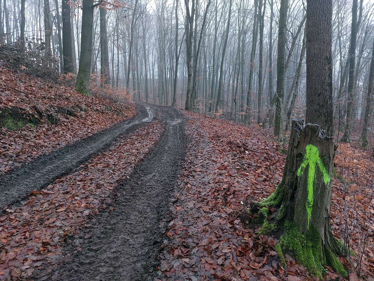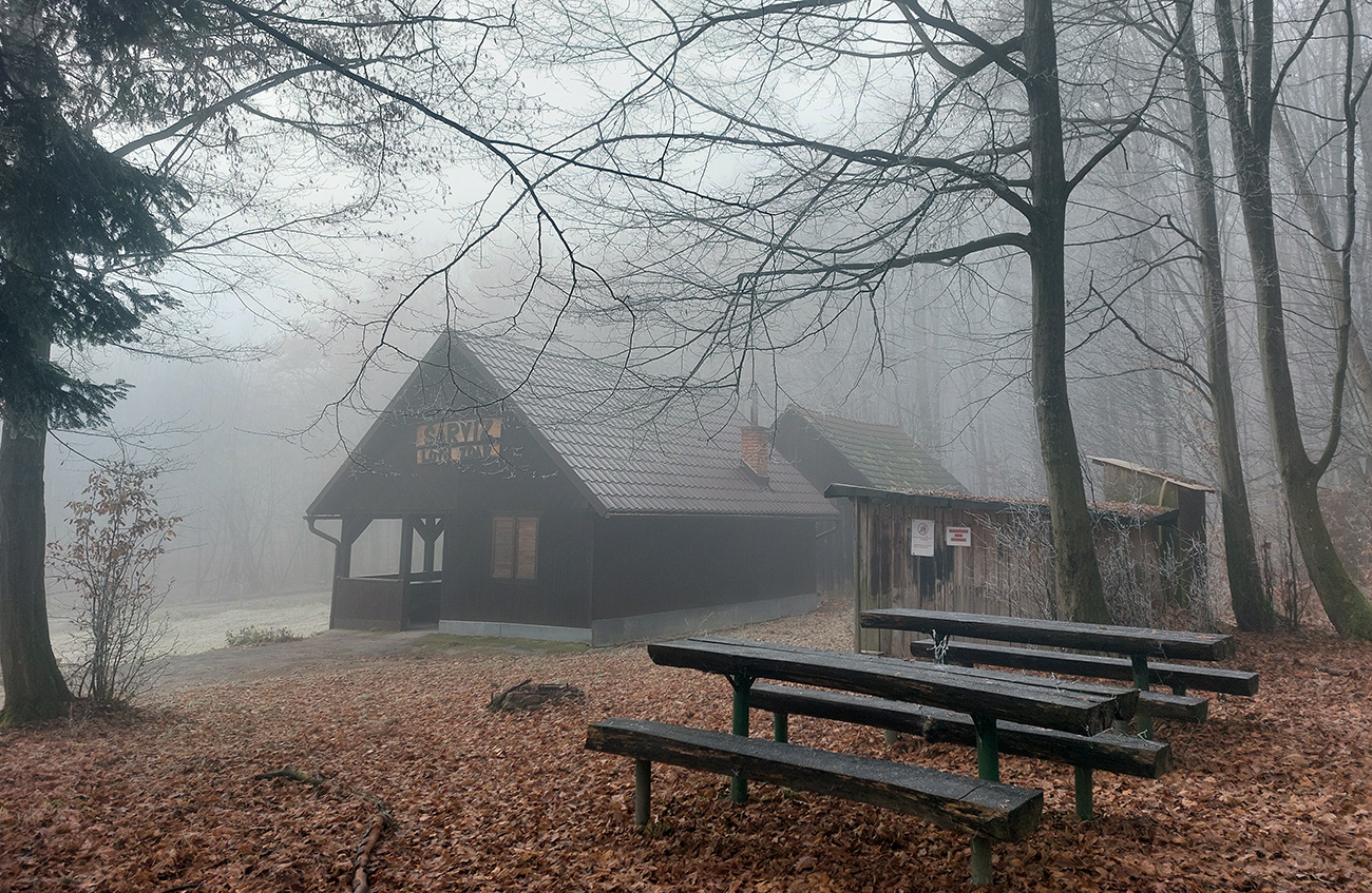 A návrat – ešte kúsok po cyklotrase na križovatku Zadný Šarvíz a odtiaľ popod Johan po neznačenej lesnej ceste traverzom, až kým sme sa na modrú nenapojili. A potom už len po nej až do krčmy, na odmenu :-) Dobre sme si zašportovali, len sa okuliare a objektívy cestou zahmlievali a veľa metrov ciest bolo nepríjemne hrboľatých. Našťastie blata nebolo veľa a keď, tak pod lístím. Ale aj to sa počíta, keď snehu pod lyže niet. Tak si držme palce, aby snehu bolo!