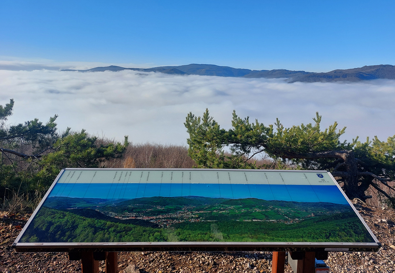 Priamo proti slnku, hrboľato dole a občas aj hore, prevažne po žltom a následne po zelenom náučnom chodníku, sme sa posúvali cez tie spomínané početné pozostatky banskej činnosti. Prvým artefaktom bola bombastická rozhľadňa pod Hájom pri bývalom lome – s panoramatickým výhľadom na biele more pod modrou oblohou. Ostatné všetky atrakcie boli pod hladinou. Ale najkrajšia časť tohto výbehu, jednoznačne.