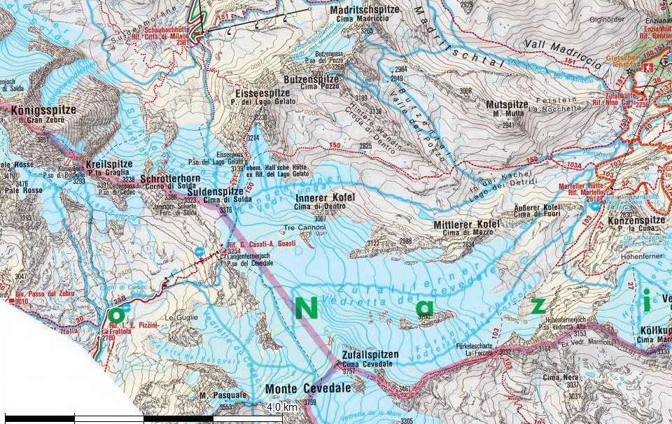 Chata Casati sa nachádza v Ortlerských Alpách. Nájdete ju priamo na polceste medzi vrcholmi Cevedale a Königspitze v sedle Langfernerjoch (3266), ktoré sa často nazýva aj Cevedalepass. Chata leží na okraji ľadovcového plata po ktorom vedie klasická výstupová trasa na Cevedale a Zufallspitzen. Sú odtiaľto nádherné výhľady na Königspitze a množstvo ďalších vrcholov.Kuriózna a atraktívna nie je len jej poloha, ale aj veľkosť (230 lôžok) a nadmorská výška 3254 metrov nad morom. Chata bola postavená a otvorená v roku 1923 ako náhrada za cez vojnu zničenú Halleschen hütte v neďalekom sedle Eisseepass. V roku 1934 bola postavená nad chatou ďalšia menšia budova, ktorá nesie meno Alexandro Guasti. Táto dnes slúži ako winterraum. Ten je v čase, keď je Casati zatvorená stále otvorený a prístupný. V čase mojej návštevy boli sprístupnené dve spálne s poschodovými posteľami (cca 12 lôžok) a jedna spoločenská izba. Vo winterraume je zakázané kúriť a zakladať otvorený oheň a tak prípadným záujemcom o návštevu v zimnom období odporúčam teplý spacák. V tejto nadmorskej výške moc teplo nebude. K dispozícii tu sú postaršie deky. (foto)