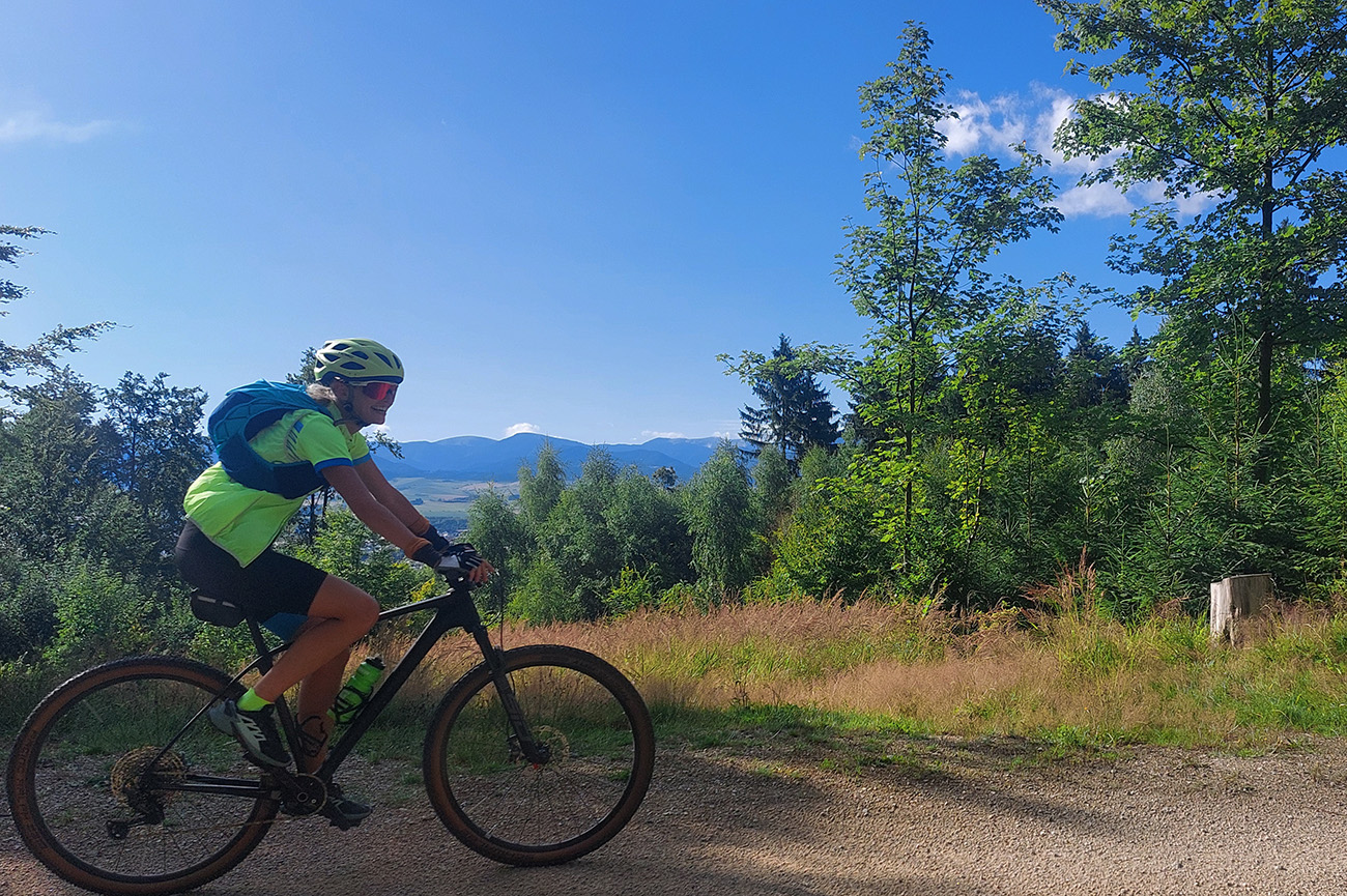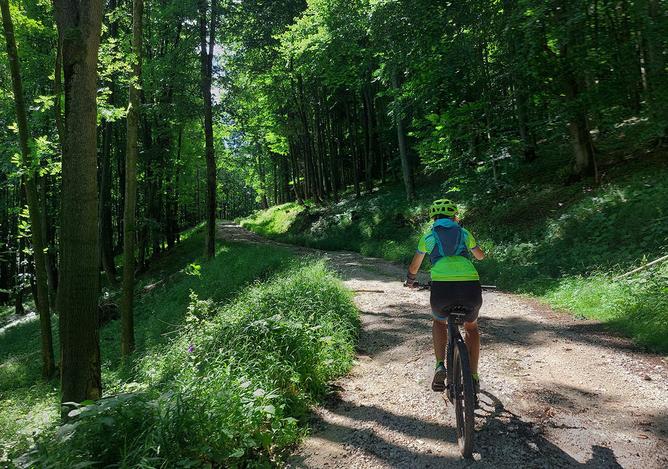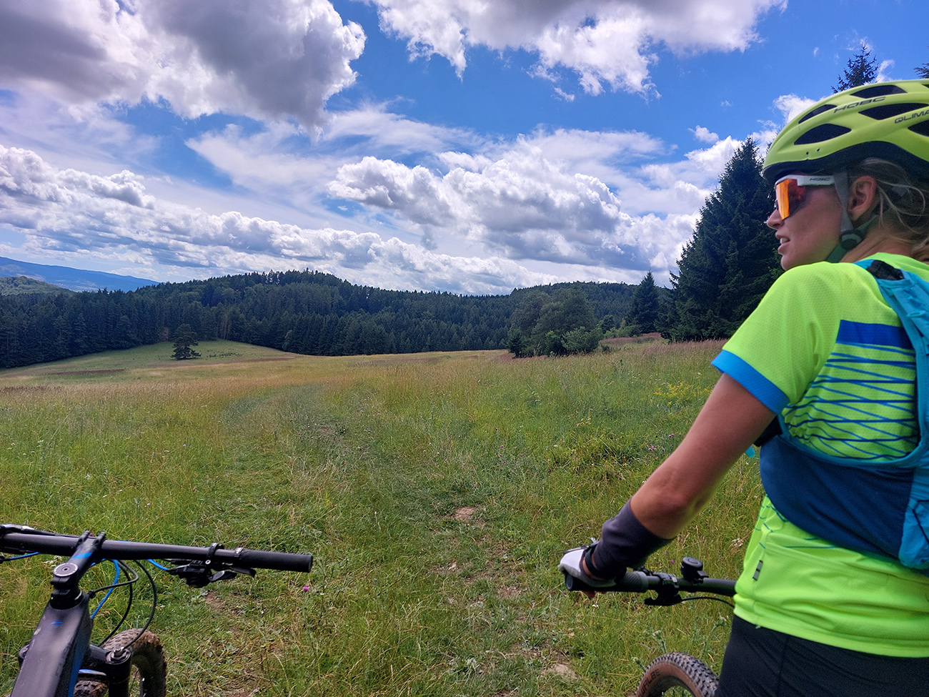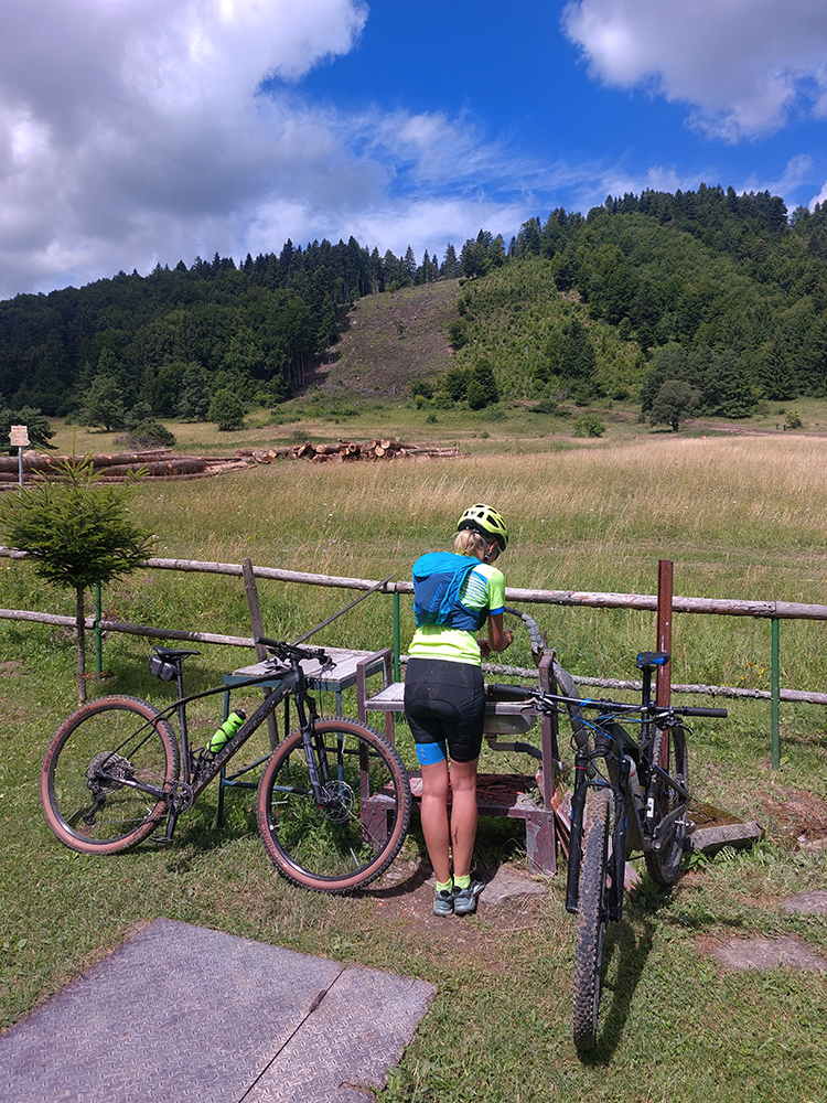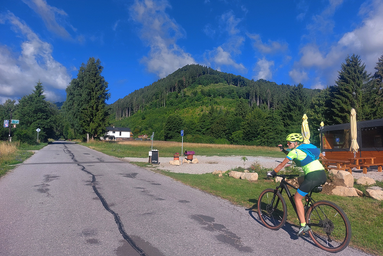 V ústí Trebostovskej doliny preč z asfaltu do lesa, serpentínou okolo muničáku a dole do Valčianskej doliny – nenáročný, nehrboľatý zjazdík, peknou bočnou dolinkou, tak pre spestrenie. Akurát po búrke čerstvá preliezka cez chodník, ale s tým sa počíta, nevadí.