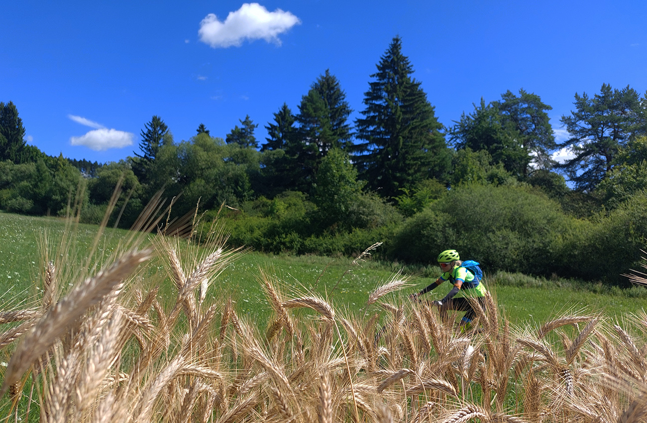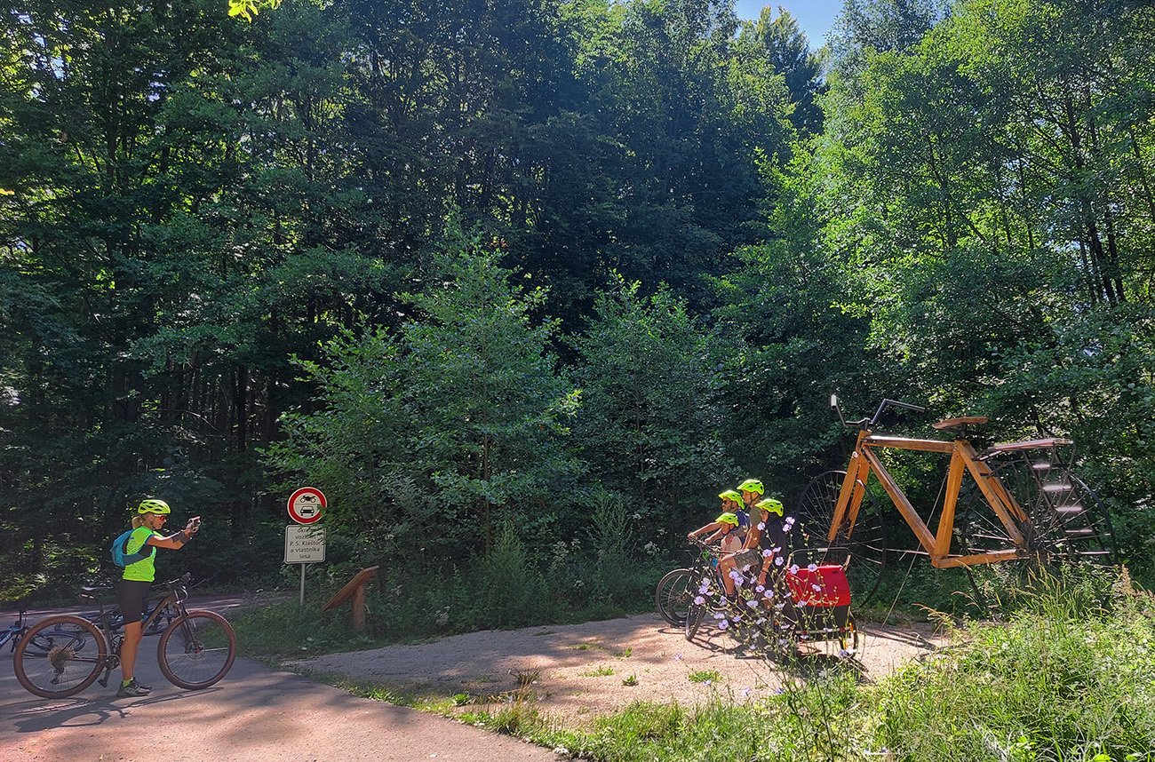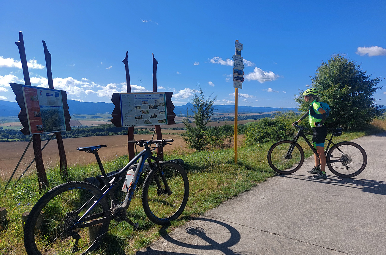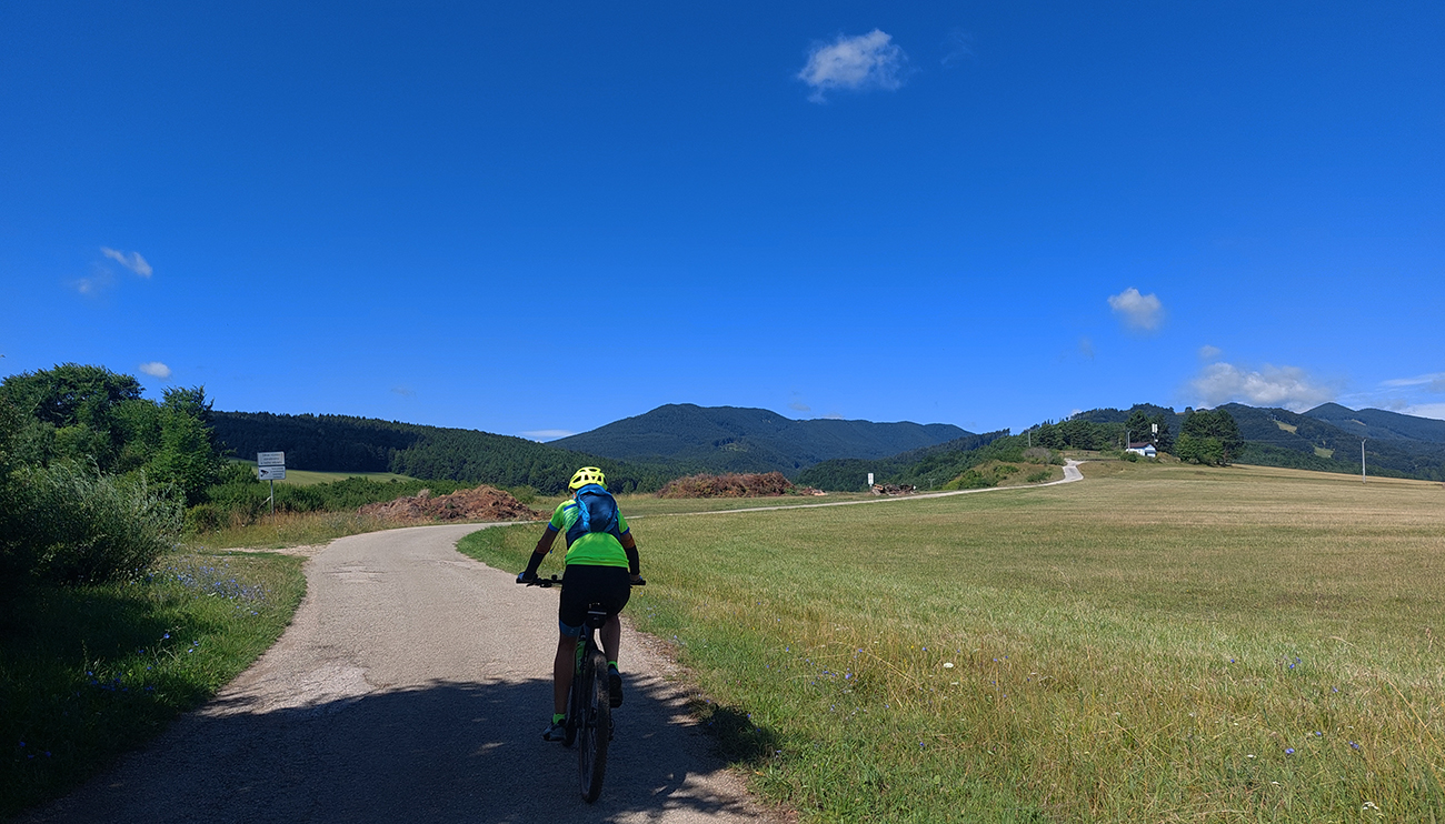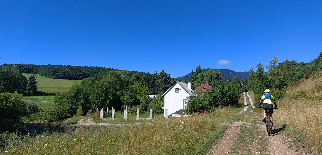 Dole do Brieštia je to taká trochu hrboľatejšia cesta lesom, ale nič nezvládnuteľné, aj pre začiatočníka. Potom len zošup dedinou a nad obchodom doprava, stále po cyklotrase, lebo samozrejme Hadvigu sme nemohli obísť. Krátke stúpanie zárezom cesty a za horizontom znovu pekná pasienková krajina.